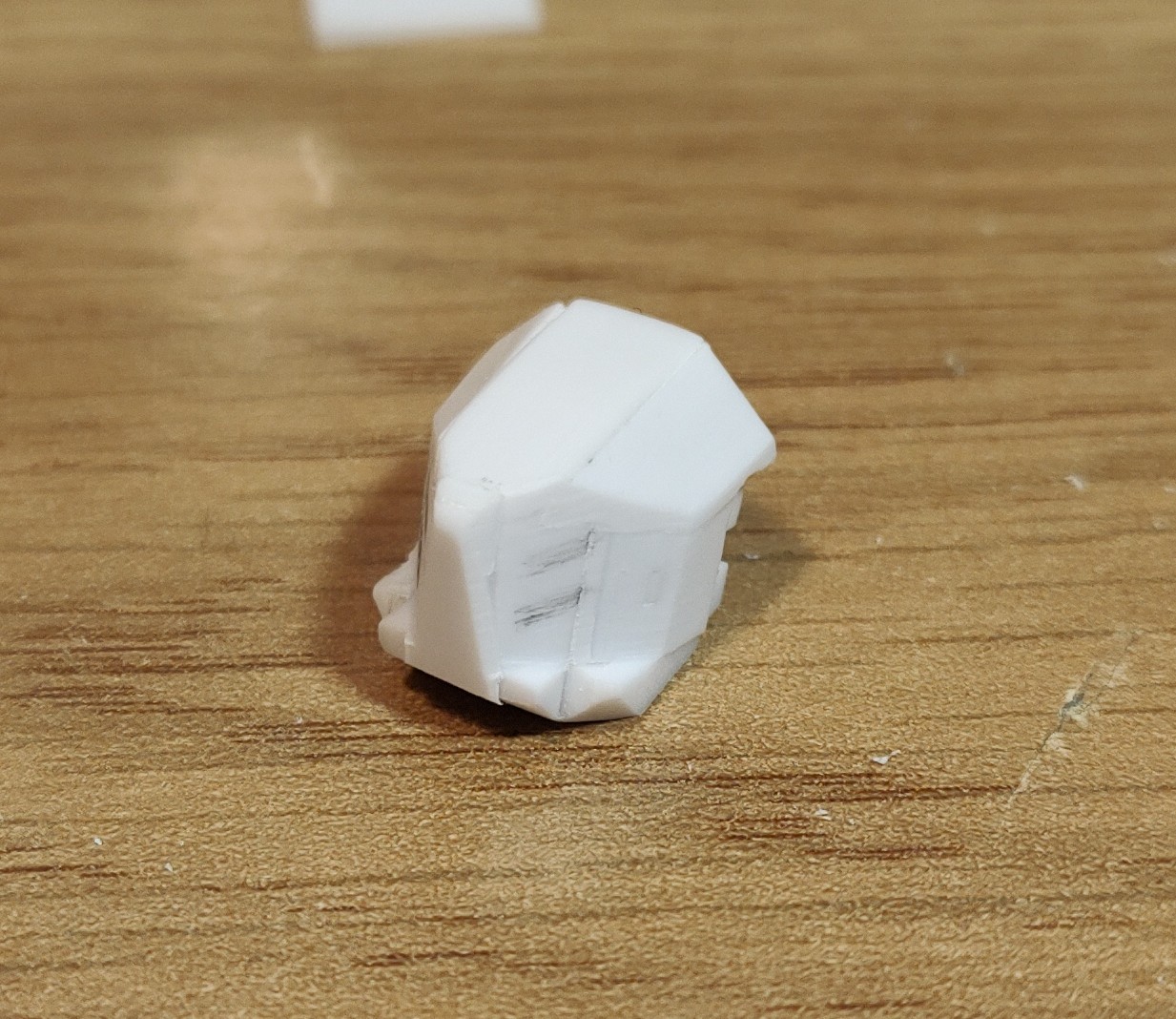 Third time is the charm I guess since this time I got, more or less, the shape I wanted. But had to make unusual connection to main head part to do so.Last time one anon suggested to make head more like samurai helmet. While I don't really want to, I thought that maybe some Oni feeling would be better instead so I added some sort of fangs. What do you think? Would you also add some simple single horn on the front as well?
