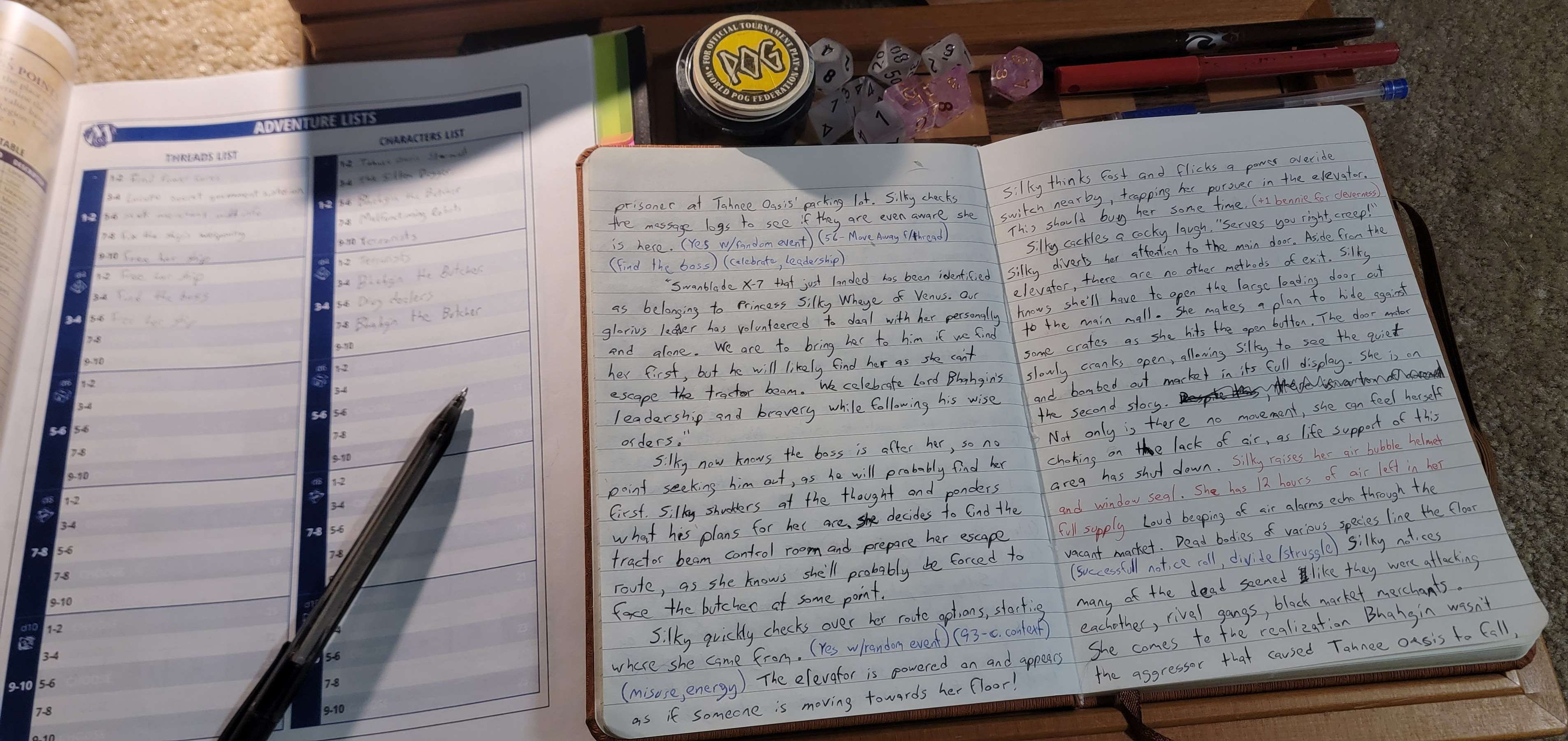 >>97455846I've read over your notes, those 2 pages, seems like you had a total blast of fun. It automatically makes it un-cringey if you had good fun with it. What's the theme / genre / lore? Seems like Space-Opera. Also I read about bennies, so I guess mechanics is SWADE, right?BTW, end of first line, first page, I read it like 'Silky Cheeks' at first, made me giggle.