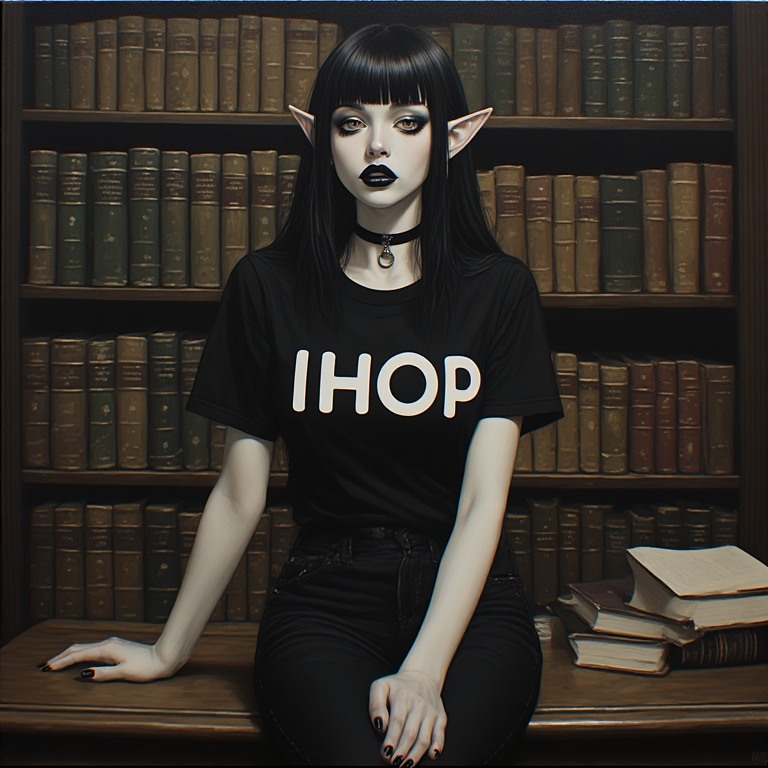 >>97454647She wears the IHOP shirt ironically, she's a HUGE book nerd & librarian