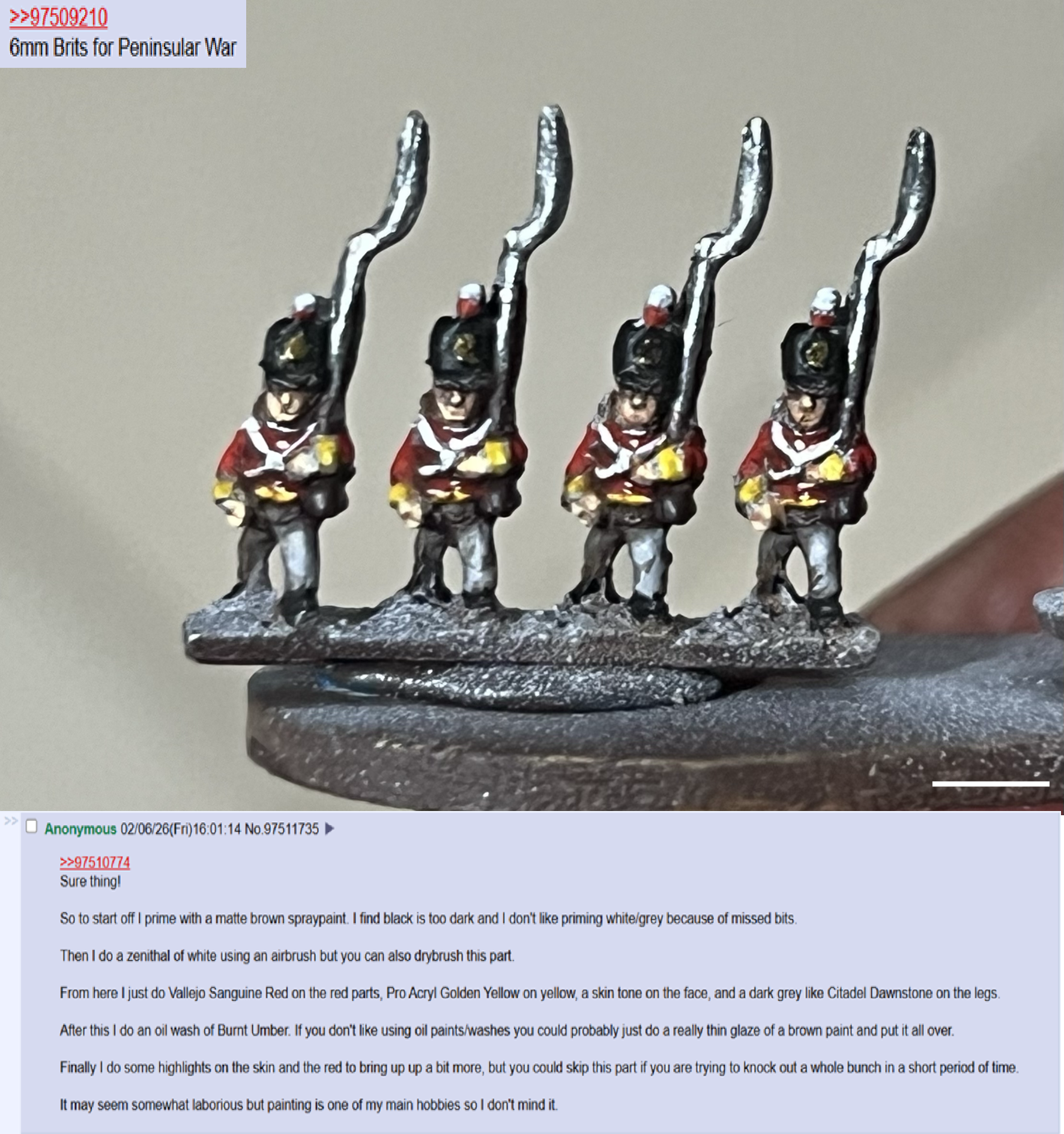 >>97545784Sweet! I am just about done with my english and french forces. Really happy to almost have this project completed after like a year.