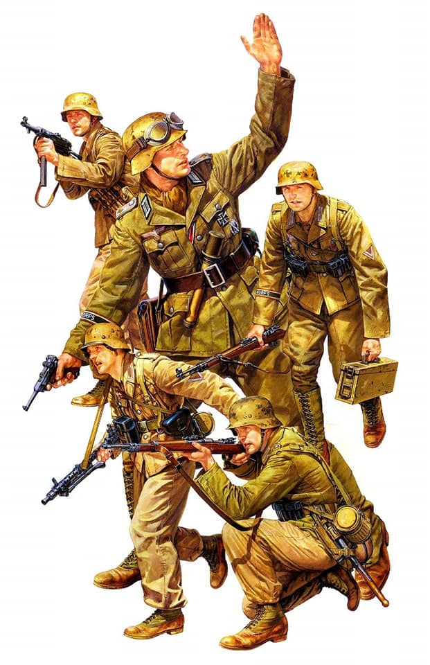 >>97512862>>97512869The old Ospreys were often quite poor for colouring...annoyingly, all the DAK website I had saved with original uniform details are now dead. I'm not sure about the greatcoats, but the other uniforms start green (for Heer) and fade, while the Luftwaffe start yellow and fade, etc.