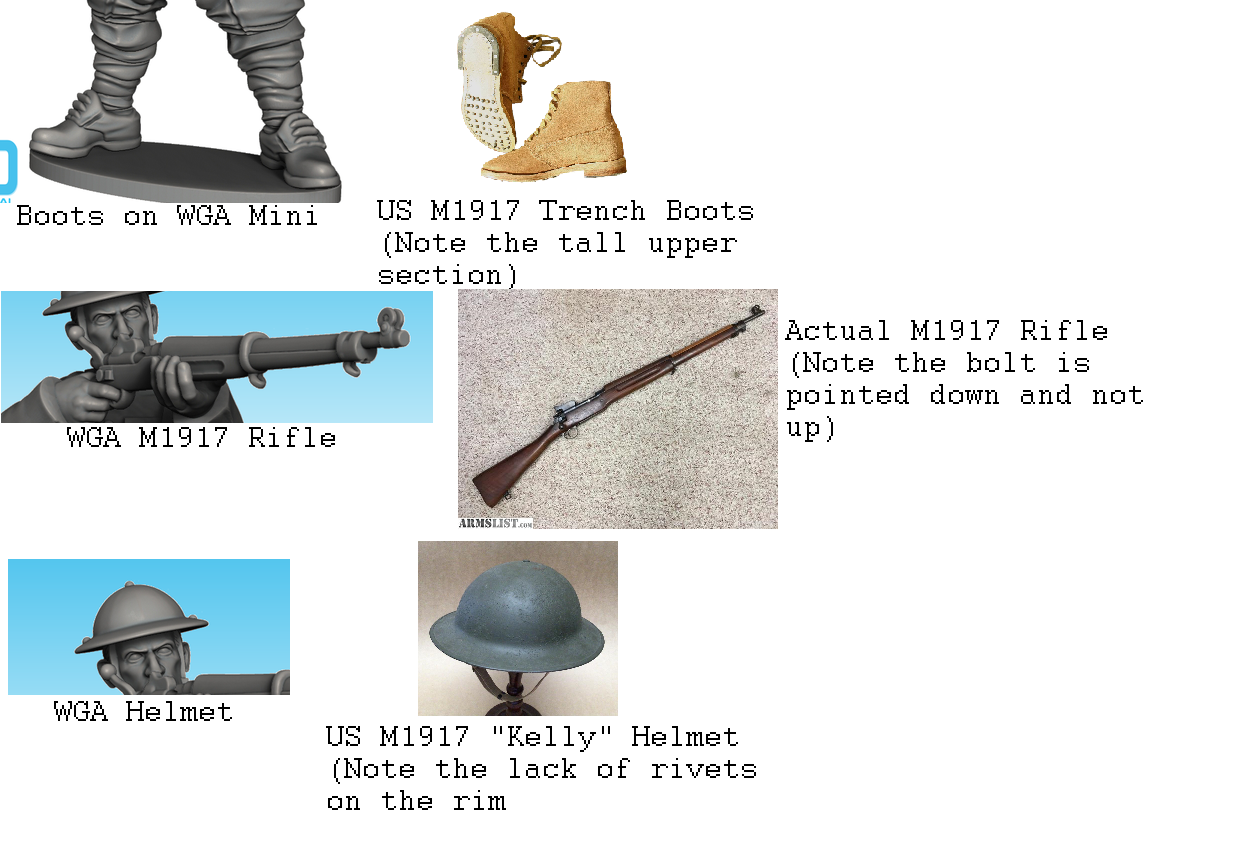 >>97451138A long time ago I made a post assmad about WGA Digital's WW1 Americans because they were using German rifles. Well recently, WGA released a new version with actual American M1917 rifles! The only problem? The sculptor obviously did next to zero research because not only is the uniform wrong now, but he modeled the rifles with the bolt up for some reason? WGA Digital continues to piss me off
