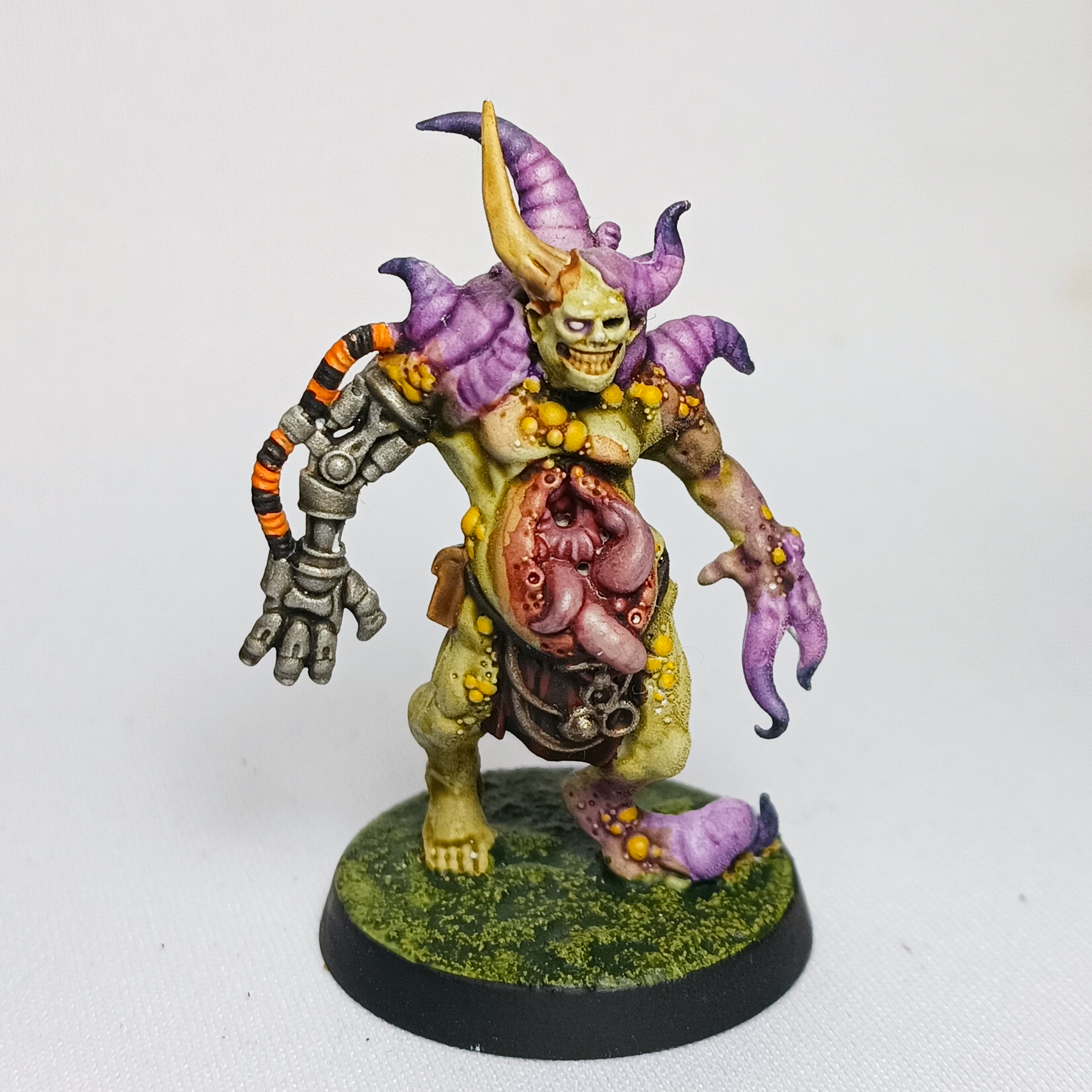 >>97453687that's not a demon, that's a ship worker infected by nurglite shit breaching through the gellar fieldthe demons with cybernetics are the nurgling in the same box those guys came from, which are essentially possessing servo skulls, and the soulgrinders, who are demons that were banished to the warp and are paying vashtorr for a mechanical body so they can bypass the timed ban from realspace that they get when they're killed, in exchange for the souls they grind to go for the forge of souls
