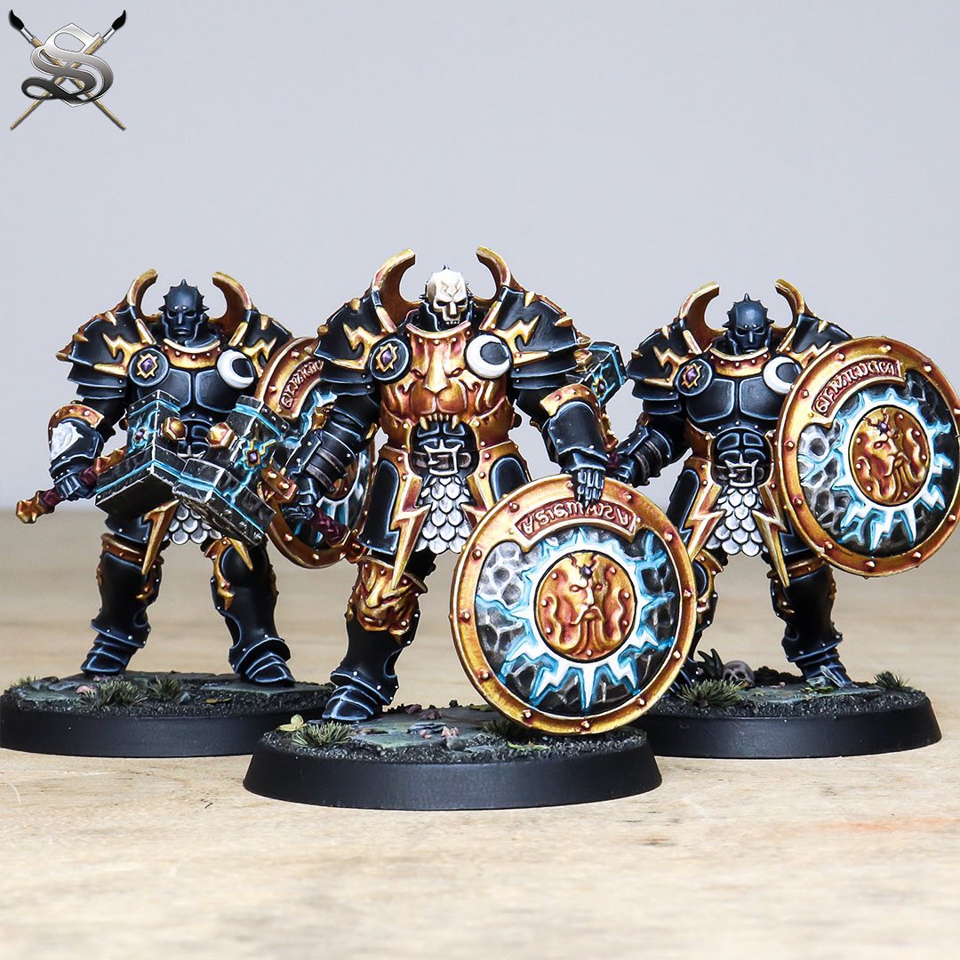 >>97457052>tqfuck if I know if it's "canon" or not but I quite like seeing stormcast painted up in black with gold accents. Makes them look like little fat metal thunderclouds.Also I gotta say the more paint schemes I see the less I like the standard "everything gold" scheme on them, it's something that should probably be reserved for special characters or something. I guess games workshop has started to experiment a little, using the hallowed knights scheme for skaventide instead.Are there any other factions with shitty "posterboy" colour schemes? Helsmiths come to mind.