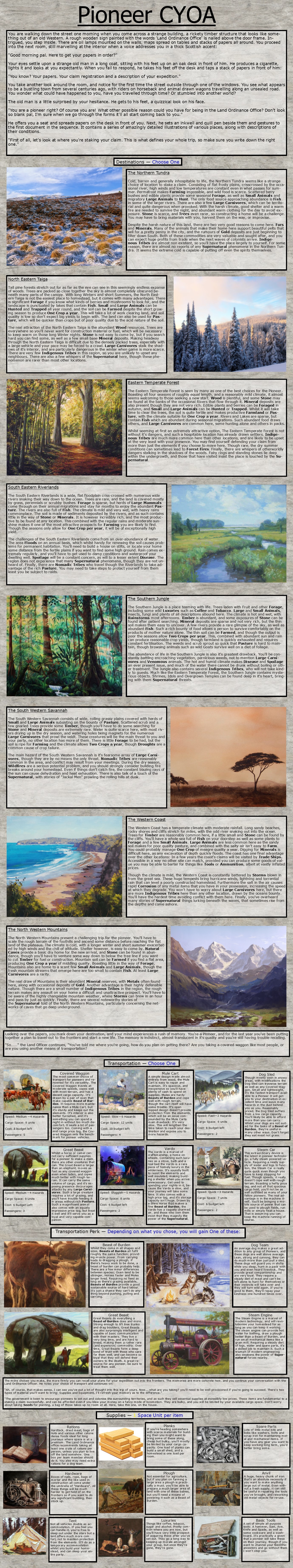 "A Final Mission" EditionArchives & Other Resources: https://rentry.co/cyoagAllsync: https://cyoa.allsync.com/s/owWor64yLTngDk3Previous thread: >>97475036>Thread Question: What biomes do you typically lean toward in a CYOA? Are they the same one(s) you live near?