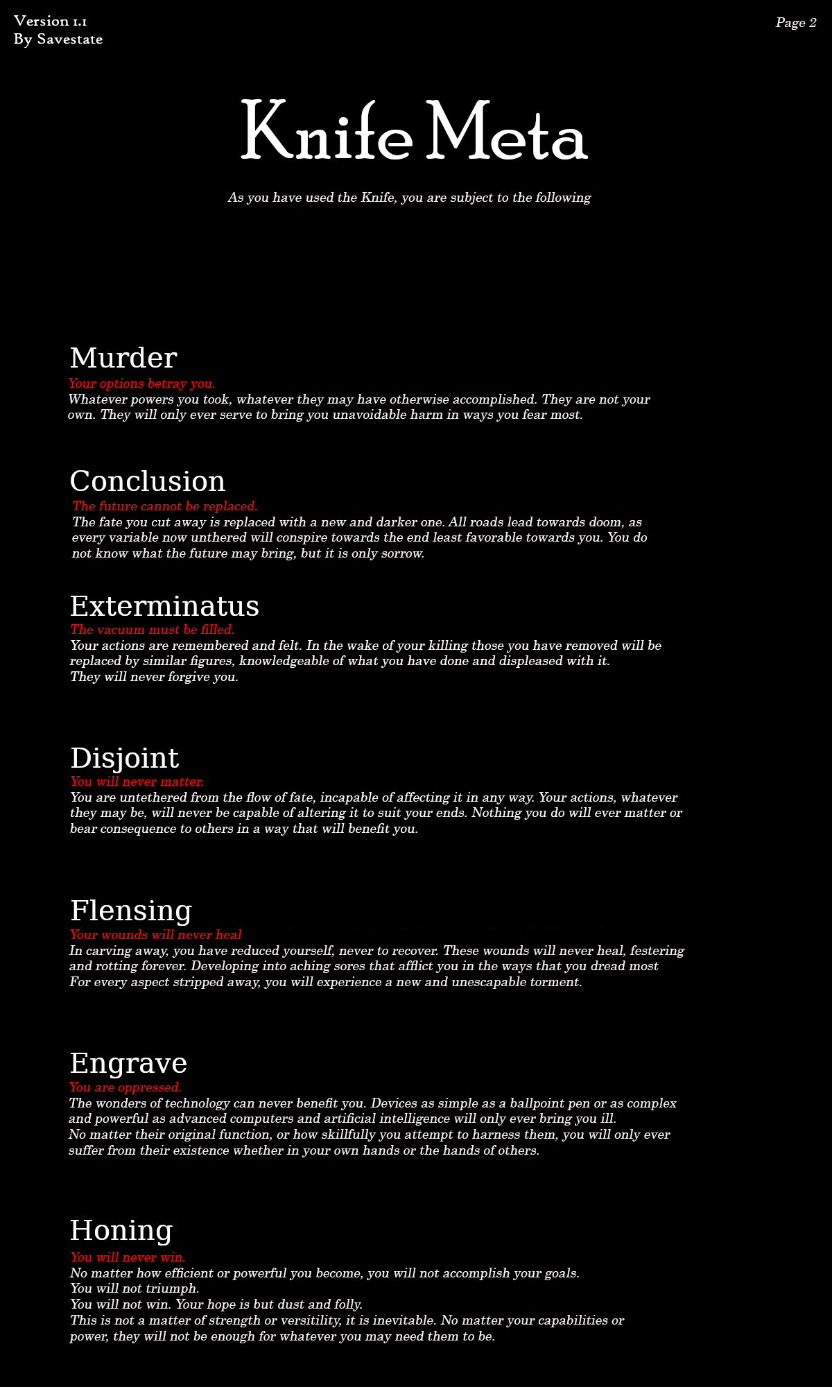 >>97489728Makes perfect sense to me. Authority over information must also include the ability to hide that information, including hiding who you are and where you are.The really interesting part is other information though. Can the Hermit make others forget about their own abilities? Could be used as a poor man's Fooling if so.