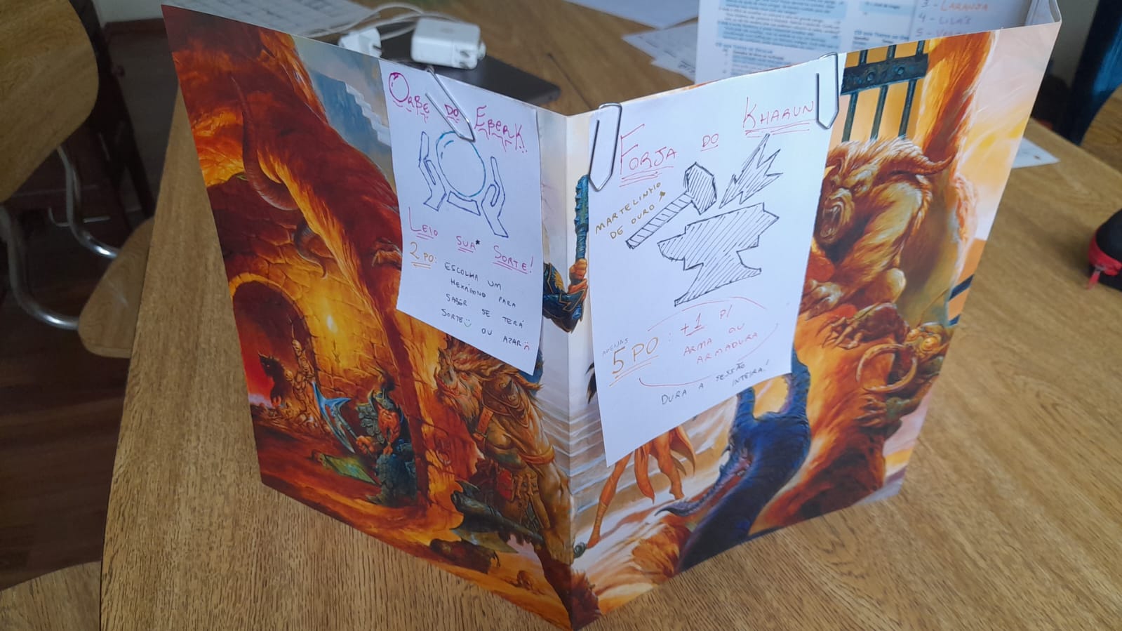 >>97489387>glad it's working out for youFirst 2 sessions were great, hoping to continue the trend this week>>97489987>playing in person is already an advantageYeah, I get you. I tried online TTRPG a couple of times but even as DM I lost interest pretty quickly. To me, it loses a lot of its appealBy inviting a large number of players, I'm hoping that at least half will keep interest and play somewhat regularly. Though I'm definitely investing in giving players reasons to engage with the game/story:>i'm letting players name places they discover>satisfaction from discovering the word/new places>good XP reward for playing / character progressionAnd most importantly:>FOMOI want active players to talk about what they did, to make people that missed the session regret it lol>>97490018I really like shrines, and yes, I had Diablo shrines in mind. Nevertheless, have you checked the table here >>97487487 ? Typically each shrine has its gimmick, especially the recurrent ones. Also note that the result from this table is often associated with mobs, so it adds some dynamic to it (something like the fae example you mentioned). For instance, the VERY first tile players explored on the first session was a shrine of blood offerings (sacrifice 1d4 hp to gain combat advantage until end of session), but the party didn't go near it because it was surrounded by mobsBut nevertheless, I'm definitely open to more ideas