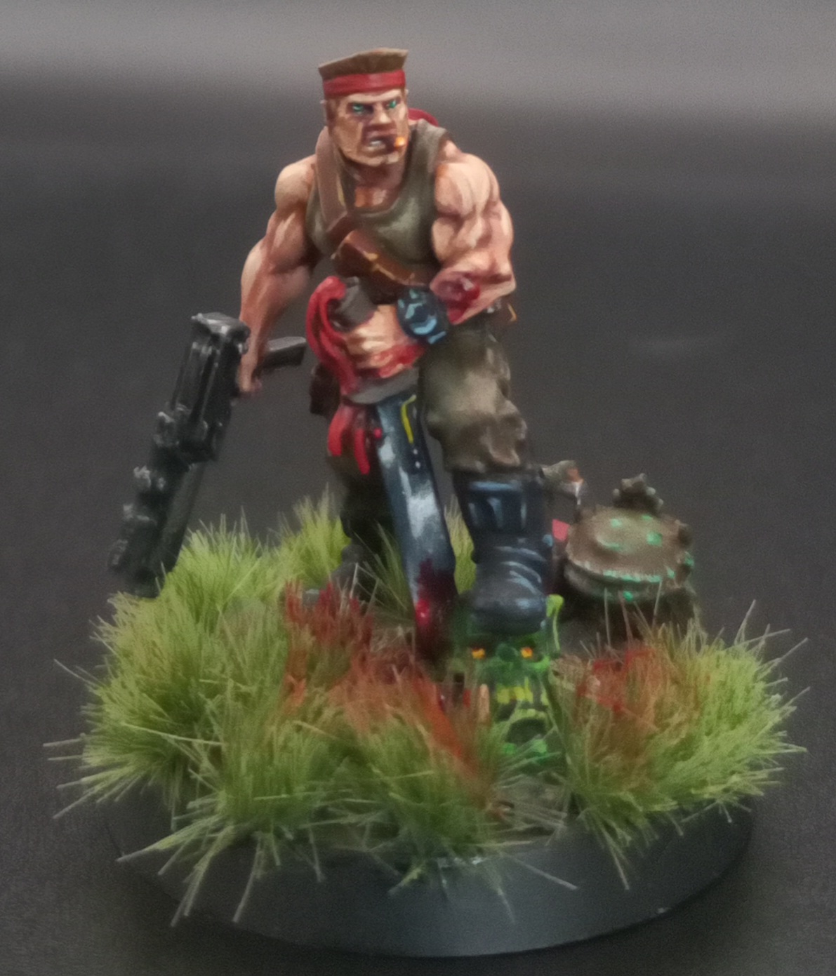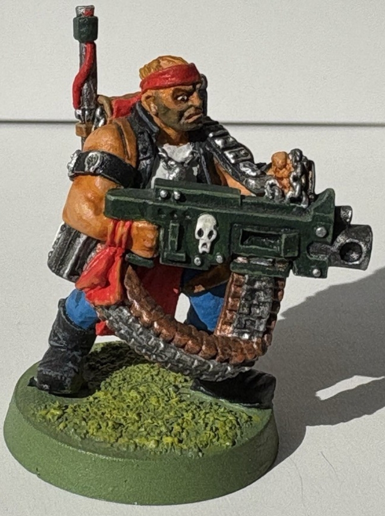 >>97491578A long time ago, I had a (all metal) Catachan army solely inspired by me seeing pic rel (not mine, this was before cameraphones) and thinking "Vietnam M60 gunner - YES". I very badly modelled up some ammo belts on a random other trooper to make the team. So - yes, if the model is cool enough and the burning desire is there, do it, amigo.