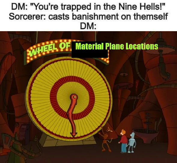 >>97510283It being a campaign (or arc) worthy event is kind of the whole point.Planar travel has lost a lot of its gravitas. It's supposed to be this rare, amazing, difficult thing, but it's often treated with even less importance than traveling to a different country. Having at least one plane as a "you might really never come back" place is useful to have, especially with Hell and the Abyss having become something of tourist destinations thanks to all the adventures that treat them as such. I have personally had characters travel to Hell (and back) more than a dozen times, and I feel like it's become something of a cliche. In fact, it's such a cliche, that the grand depository of all D&D cliches, BG3, includes a little detour to Hell.>the unspoken but very obvious expectation that the PC will win that planar lotteryThat "unspoken" business is inherent to a lot of the game, just like the unspoken pact that a deadly dungeon will contain some amazing treasure, and not just be a deadly dungeon without any reward. Players can expect that while other characters might face 1 in a billion odds, they have a much better chance. Whether that's 1/2 or 1/100 is a mystery, and anyone sane wouldn't gamble on those odds.Carceri is an often forgotten plane that's out of the way, and that works in its favor. It can be just a bit of lore that pops up every now and then, with players identifying a portal and sighing with relief that it doesn't lead to Carceri but to Hell instead.And, it can also be a campaign-changing destination where the PCs have to contend with a plane of prisoners betraying each other in order to try and be one of the handful of souls that have ever escaped, filled with items and creatures considered too dangerous to exist. Lots of room to amaze and surprise even jaded players who already have gotten their share of souvenirs from other lower planes.