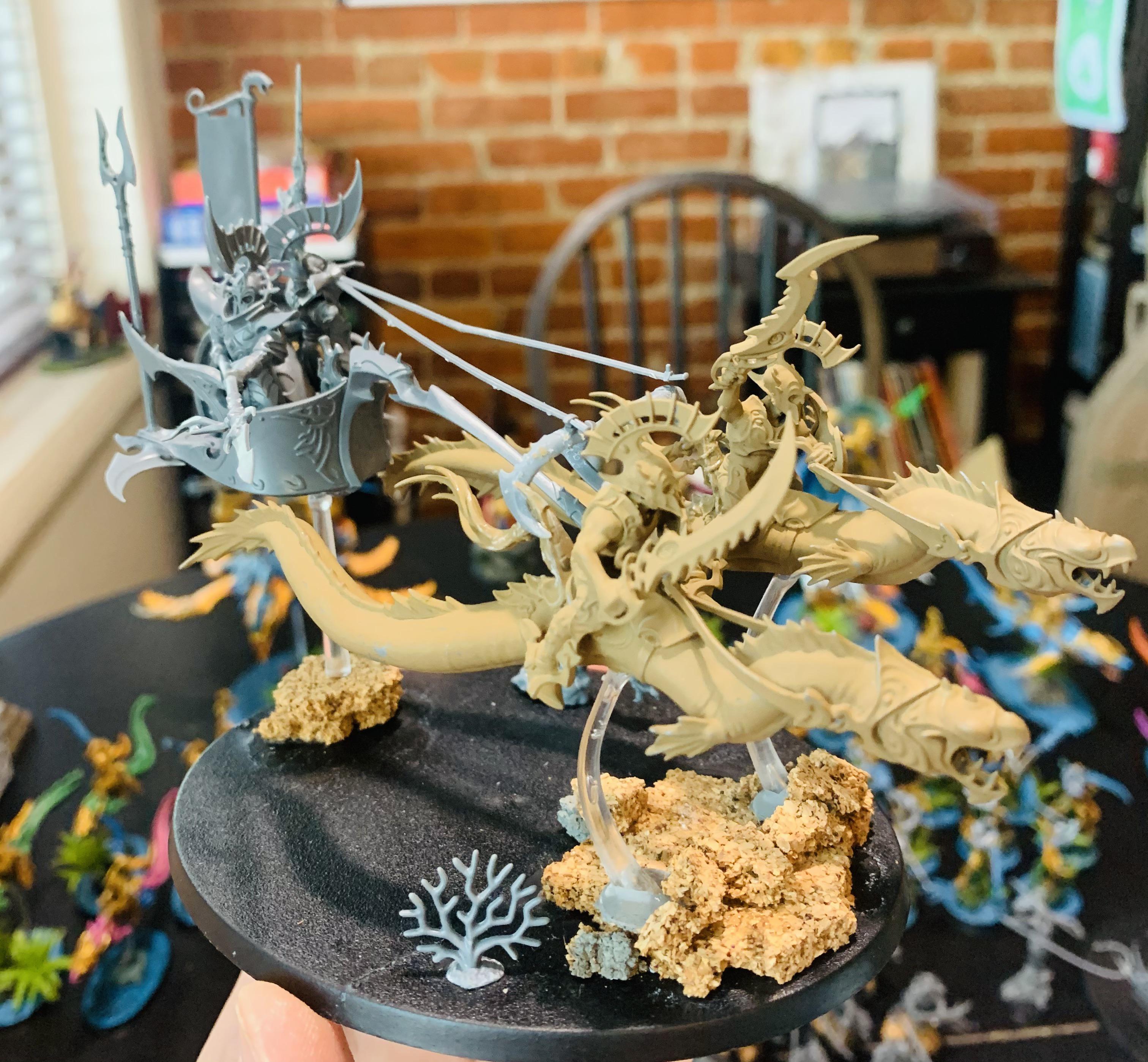 >>97494536>Chariots don't really fit seraphonThere are two arguments for seraphon chariots:one of their warrior gods was said to ride on a chariotthe ancient aliens theme they have going on rests on a book literally called chariots of the gods in both cases instead of a normal chariot with wheels and pulled by beasts it would have to be some magitech platform, maybe pulled by podracer engines of some kind, like a melee version of the starseer throne for a saurus champion