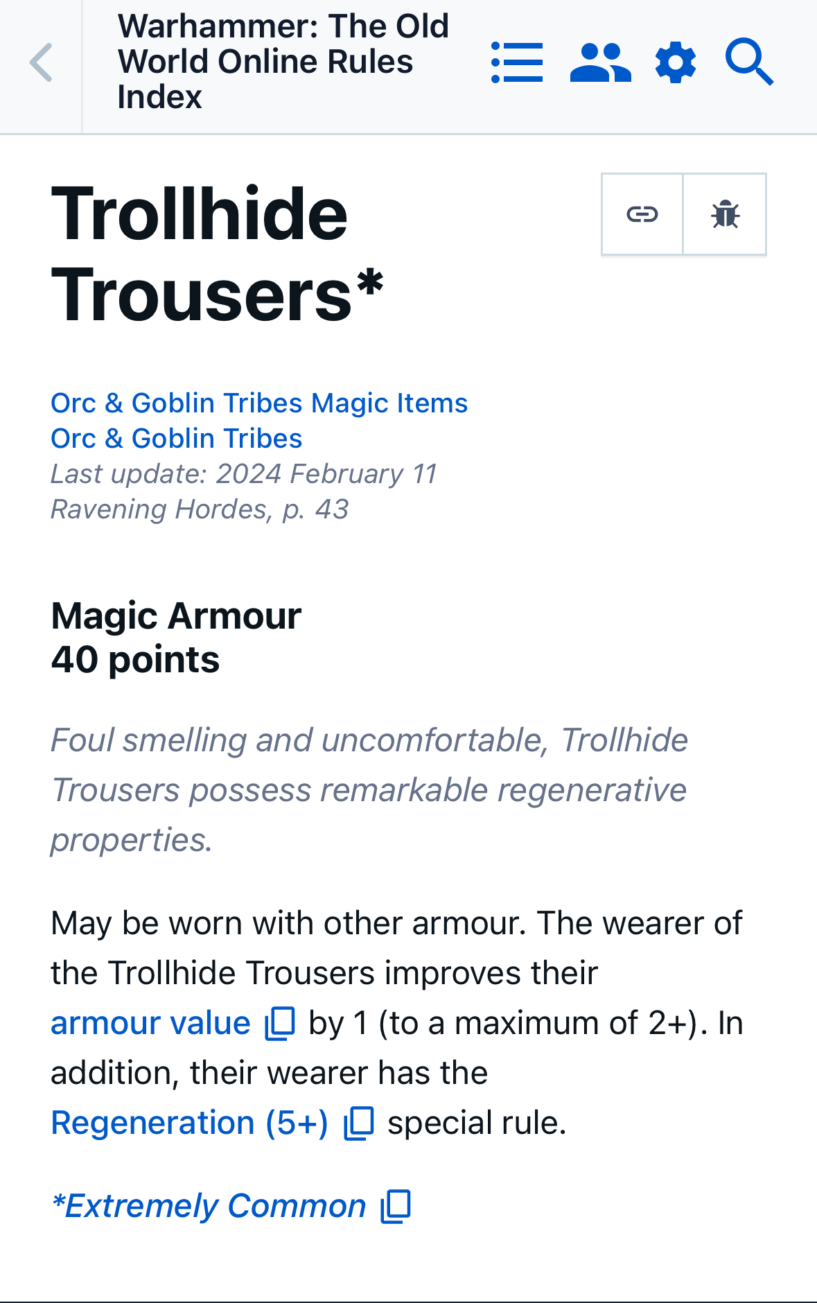 >troggoth skin keeps regenerating on its own after being flayed and worked into clothingThat's kinda neat.