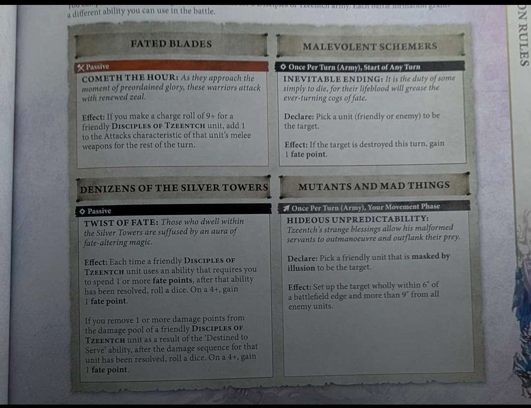 >>97496045As someone getting into Tzeentch, I'm very mixed on it. On one hand, the new fate points are strictly worse than fate dice in almost every way. On the other hand, the ability to swap out units once per turn could be really spicy. No monster limitation means you can't save Kairos but I could still see this being pretty good. Waiting to see the updated battletome and warscrolls to see how good it'll end up being.