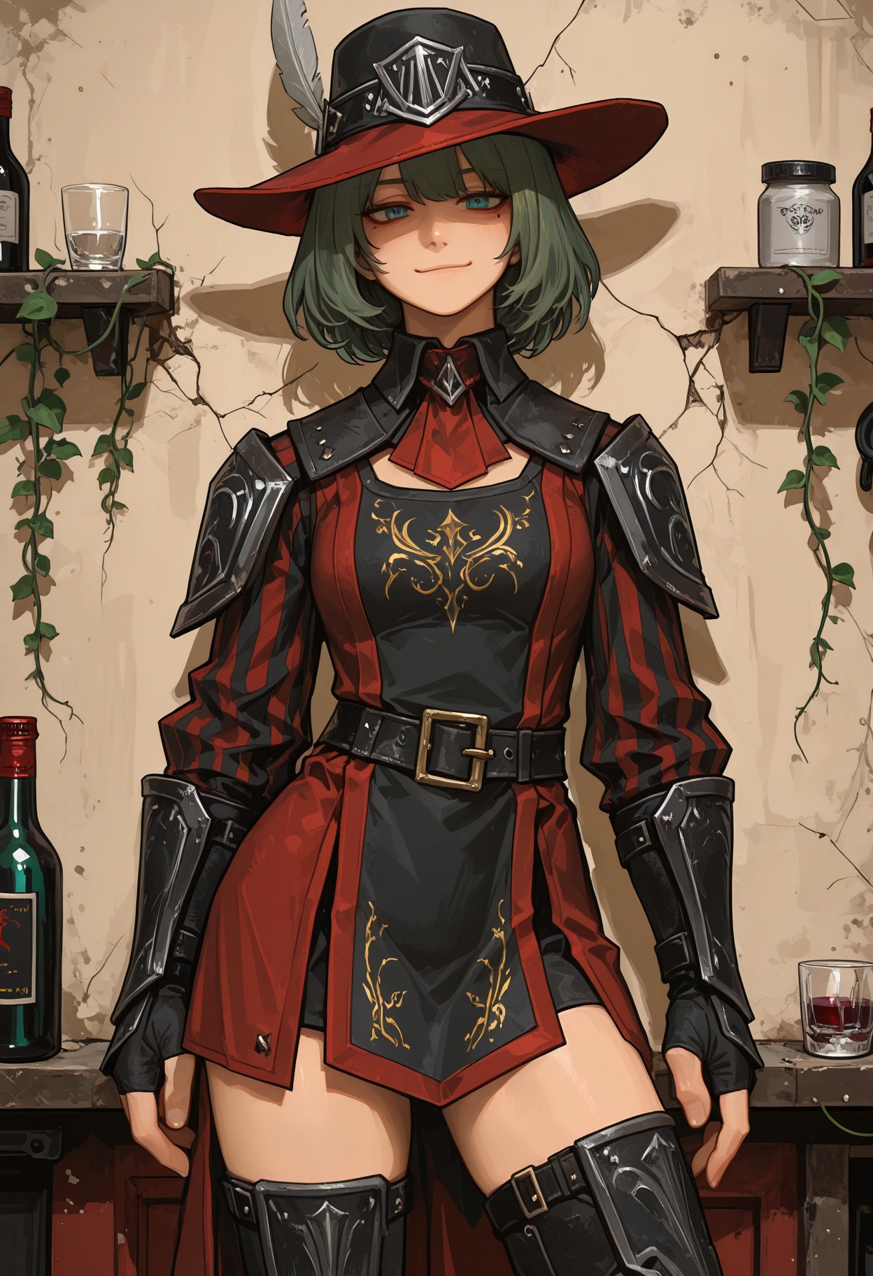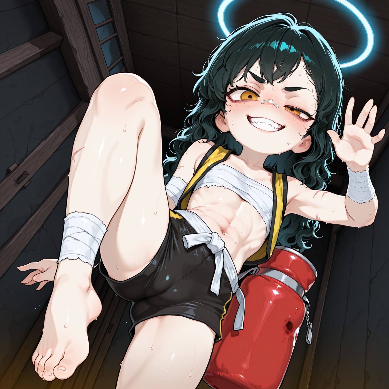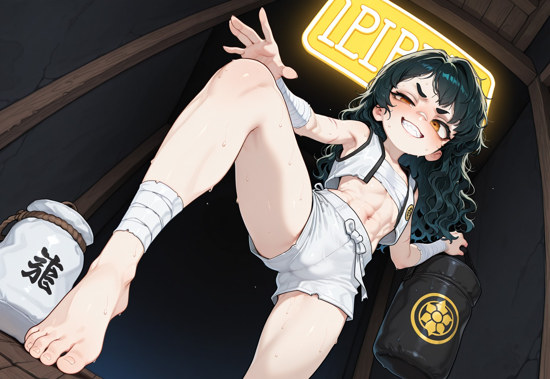 >>97500527A young lady is standing in a DOJO that keeps its lights low. It is afraid of being seen. It cannot run away. Because it is a DOJO. Old wood, warm air, HUMID, even, and a pink NEON SIGN buzzing in the background CHALLENGING you. Not like you know what it says. You never learned KANJI. That only makes it better. A heavy bag hangs nearby, glossy and as MOIST as your SKIN, the kind of object that is eager to become a PROBLEM.You are thin and wiry. People underestimate you, ONCE. Bandages cover your least and most SENSITIVE PARTS. You produce gallons of SWEAT as you awkwardly smile with your POINTY TEETH. Your FIGHTING stance is SOLID. It hides your WET and BREATHY exhalations. You bow because you mean it. You bow because you NEED IT. Only the RULES keep the hunger inside the ropes, where it can do something useful instead of getting SCANDALOUS IDEAS.Enter Name: Ignoramus BruisefreakOne more time: [REDACTED]You go by REDA. Names feel like ANSWERS, and you do not trust those. You trust the gap. The QUESTION. Your STRIFE SPECIBUS is FISTKIND. You like MARTIAL ARTS because they make you stop pretending. There is UNCERTAINTY, CONTACT, and nobody has a plan when they are getting KICKED IN THE FACE. There is the tiny pause where you do not know if you are about to land clean or eat floor, and you like that part a little too much. It keeps you upbeat. It makes you awkward. It keeps you from doing something embarrassing with your feelings, like TALKING about them to a THERAPIST.Somewhere along the way you grew an EMERGENT CODE OF HONOR. It does not make you nice. It makes you FAIR. Fair terms. No cheap shots, unless they earned it. In sparring, you stop when they tap. You are a firm believer in SUSTAINABLE VIOLENCE. In everything else, you stop when the fight stops. Outside the ring you keep looking for fights anyway. You are not cruel. You are CURIOUS and HUNGRY. You get into POINTLESS DEBATES just for the thrill of conflict. You chase BLIND SPOTS.