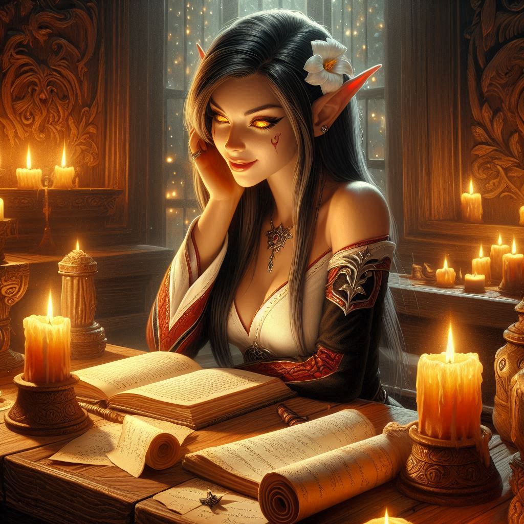 >>97491375>>97491400>>97491425In my head her voice was a bit in the deeper and more sultry register but still youthful since she's still very young (for an elf). Still, now that I'm actually hearing something, I may waffle a bit on what I actually like. Like her hair, which I initially described as straight, I find myself liking her look with wavy hair even more once I started actually genning images of her.>>97491427Are you one of my players because that's about the voice I would make when talking as her. Wait, no, you wouldn't forget how nasally I ended up trying to hit her high pitch.