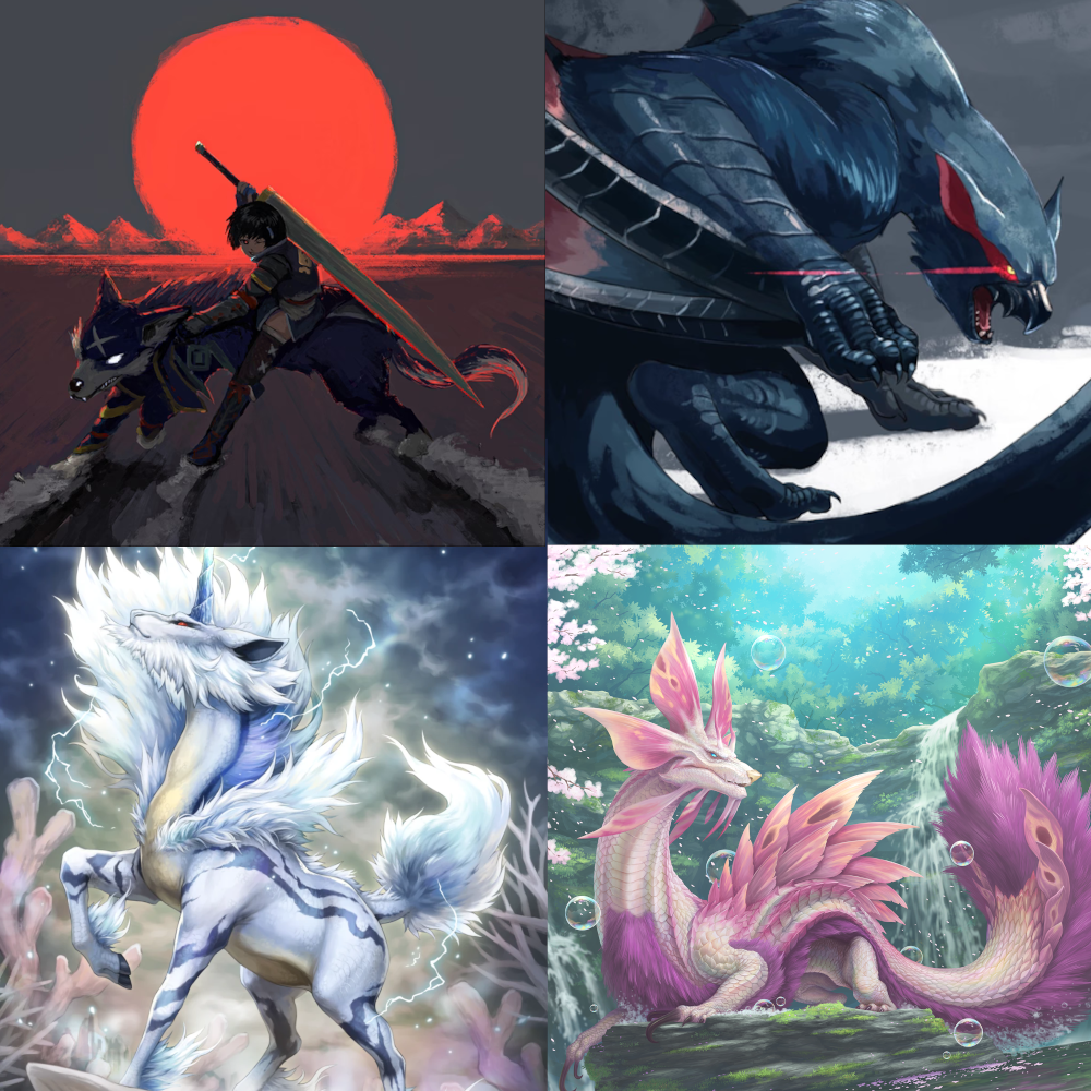 >>97513847Part of the difficulty is finding pictures of interesting and fresh fantasy monster characters. Most fanart for most series is focused on the humans. Monster Hunter (which is where all 4 of those characters are coincidentally from) is one of the only series besides, say, Pokemon that has a good variety of fanart of non-humanoidsAt the very least I'd prefer something more felid than canid, if only due to my dislike of dogs