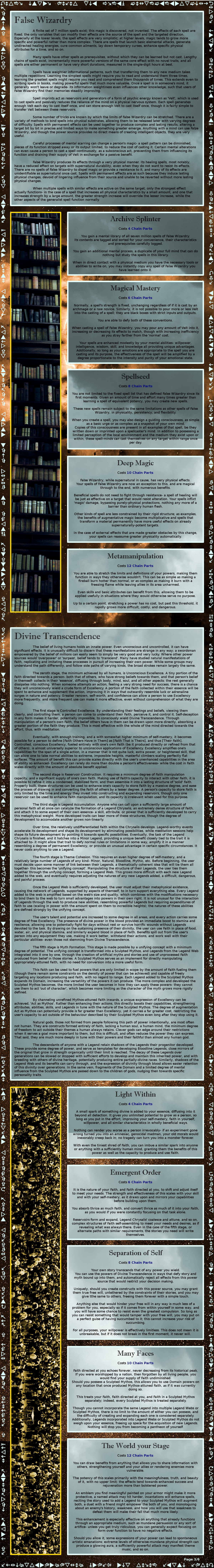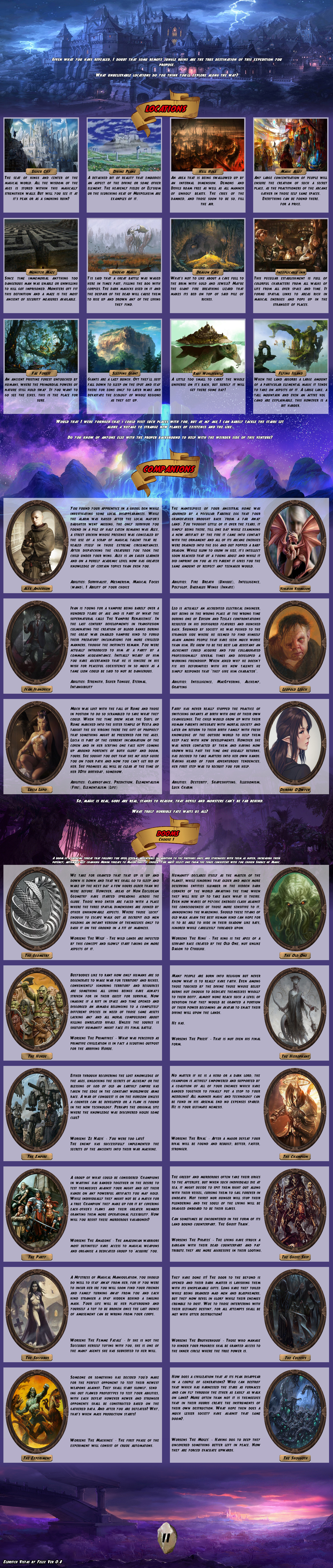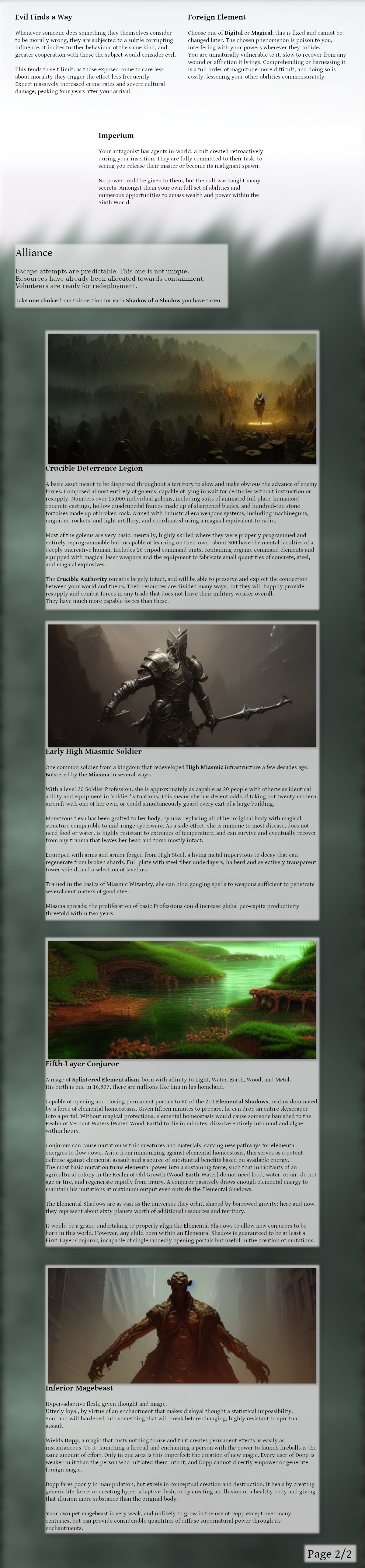 >>97519964Adding more words to your CYOA does not make it more interesting or intelligent. Black magic is a fundamentally boring CYOA because its effectively a single choice set with minimal context to interactive with using it. Its interesting as a study of different magical traditions but that same verisimilitude makes it uninteresting as a system and setting.