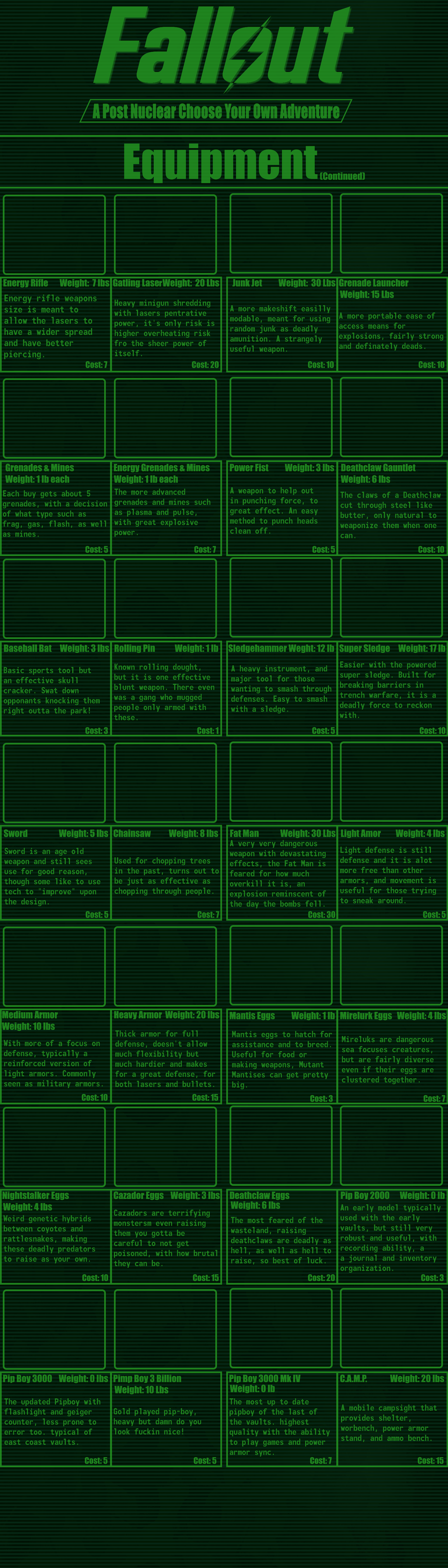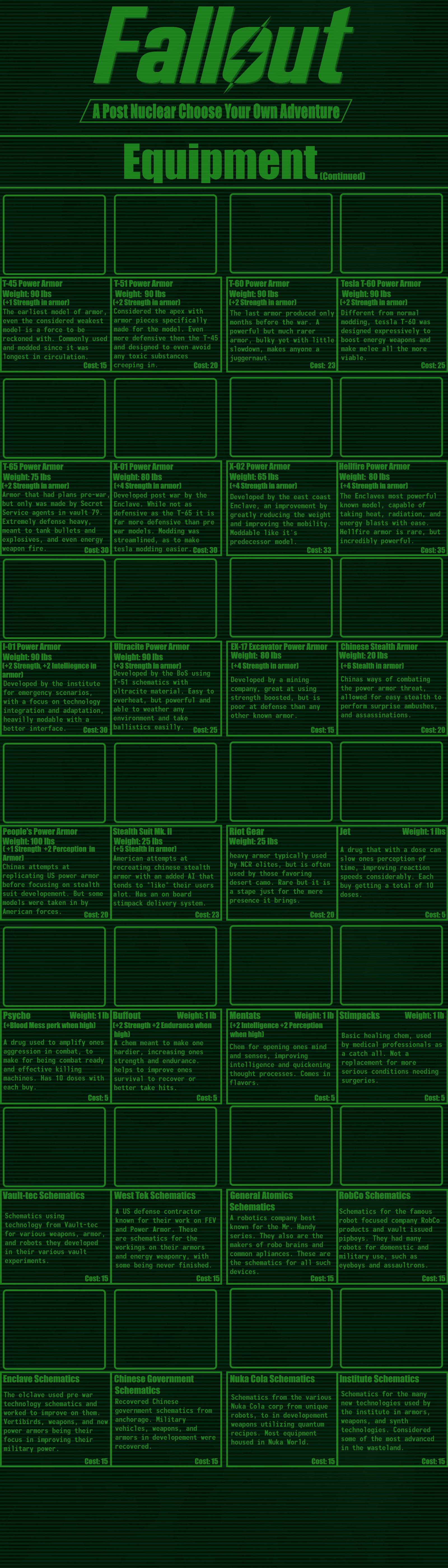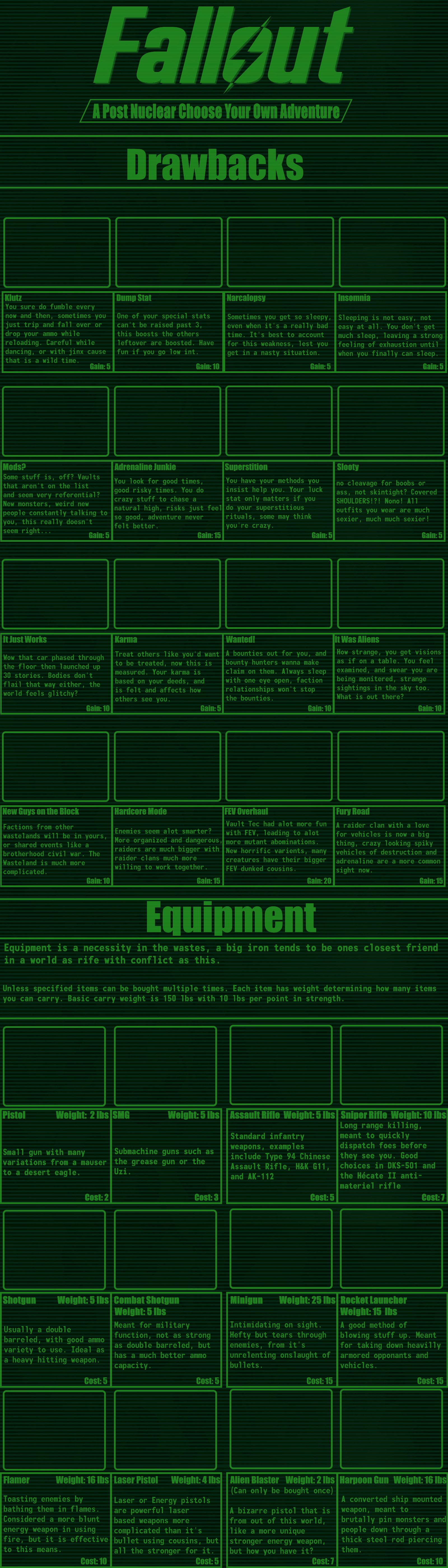 This CYOA was posted without images before AI art was a thing.I think it would be much easier to fix now if anyone cared enough about Fallout to do it.