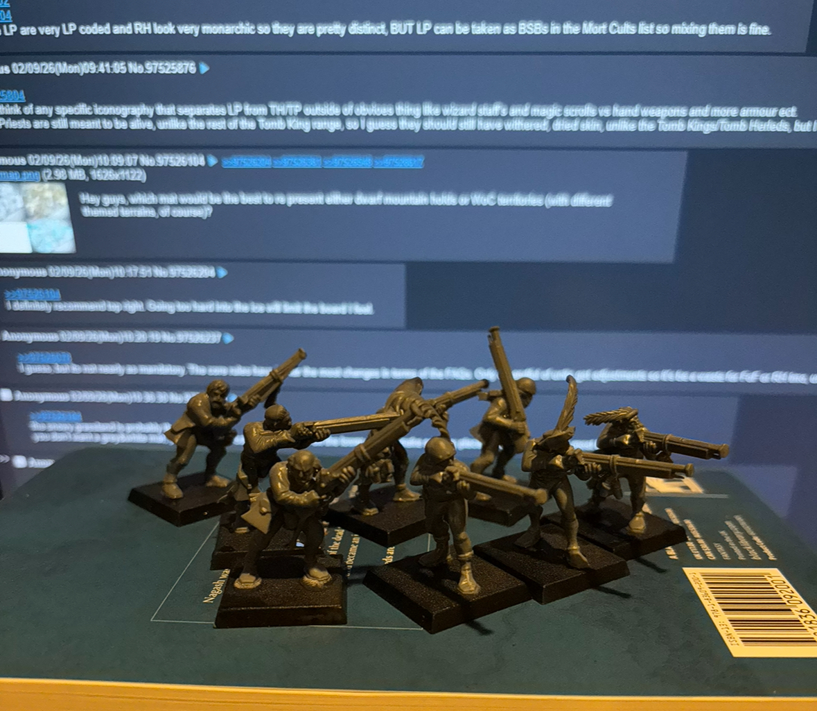 >>97541466Looks good man, seems a good interaction for a first gameT.vampire counts enjoyer Don’t tell the police but I’ve actually been toying with the idea in bigger games of sticking necro with the ghouls.>>97541854Hey rat friend, swap storm demon for ruby ring as it’s dreadful, and poison wind mortar for literally any other weapon team and you are good to go!Maybe drop the spears for hand weapons and buy a Cheap chieftan bsb if you want to make the list more competitive, (run at least one set of spears though so you’ll see what mean.>>97543421Adorable anon, a wonderful effort.