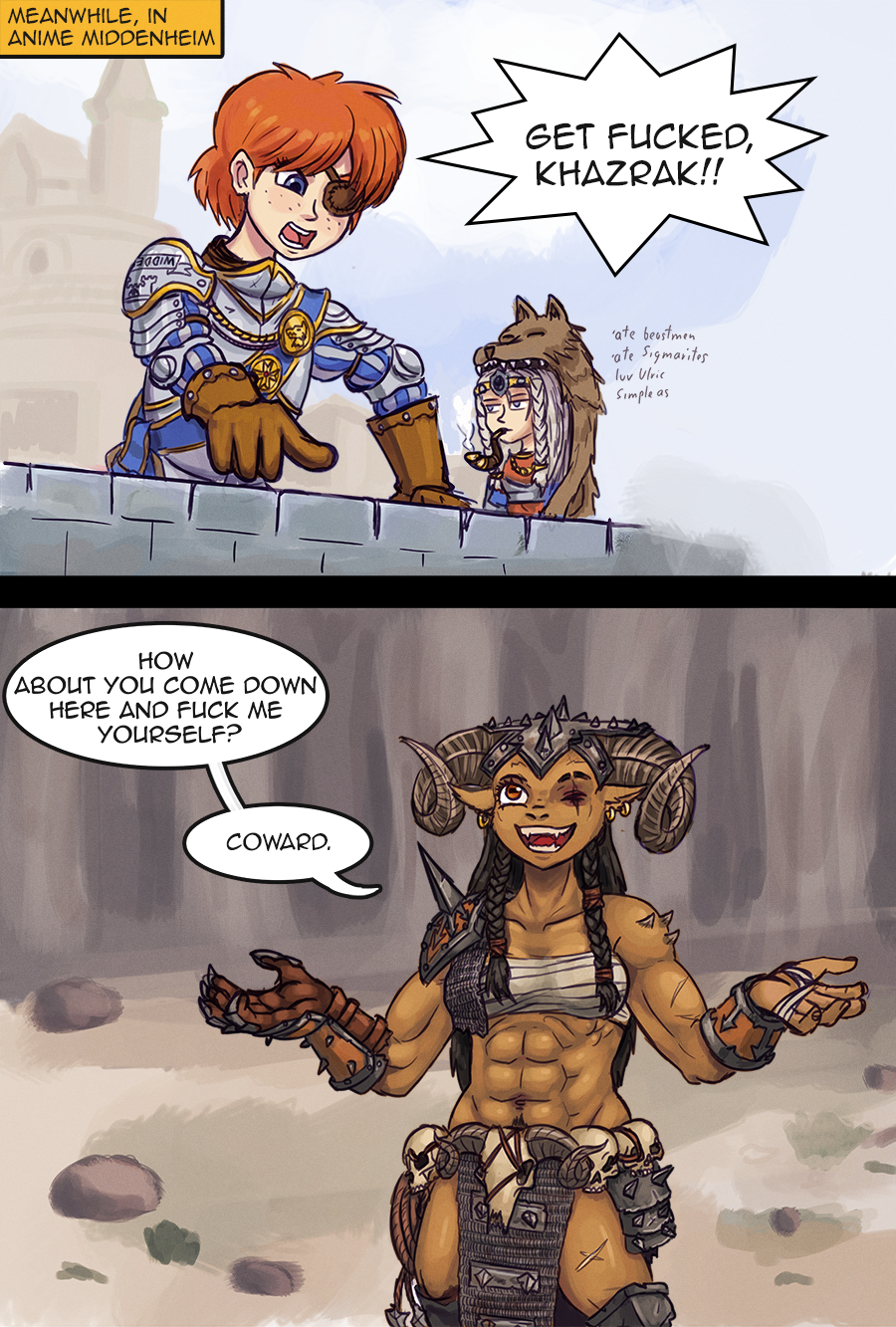>>97523729Ok that is fucking kino. We need more fanart/memes of actual shit that happened in games, the tabletop not TWW.