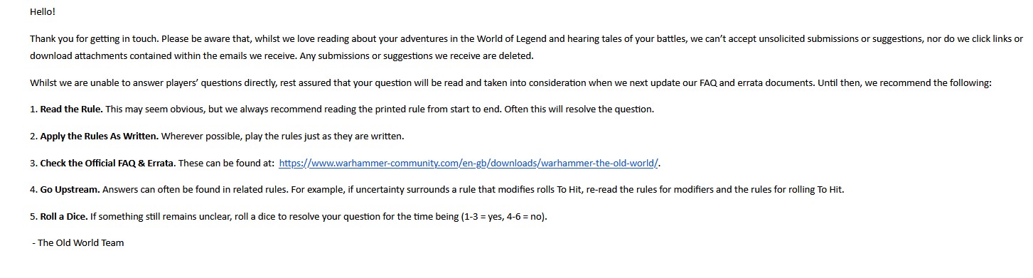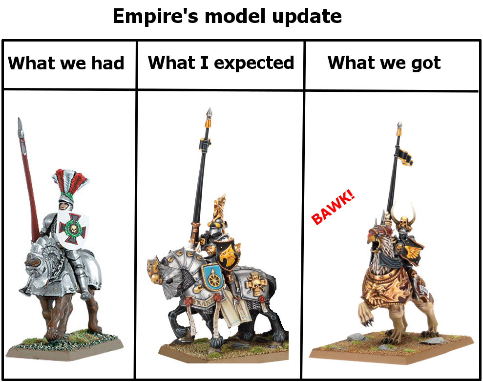 >>97543402>Tfw you are a empire serf who asked a scribe to write a note home to mum that you are finally going to see honourable combat and hope to bring home money soon>Its a fucking asshole beastman wizard riding around on a chariot casting devolution spells and turning your arrows into frogs and laughing as he rides literal circles around youoh crumbs!