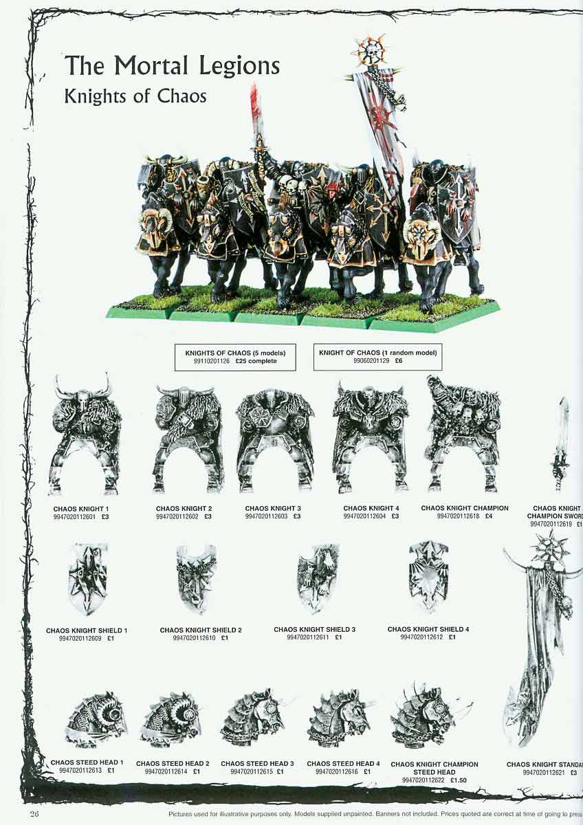 >TQA thousand and one words wouldn't suffice to fully explain how much I love these 5th edition chaos warriors. The 1997 plastic chaos warrior kit is amazing. Everything about it is something more to appreciate. These models are easy to assemble, fun to paint in batches, look great essentially no matter how you paint them, have more variety in poses and pieces than you'd expect from a kit that's 29 years old thanks to the mutation sprue, two different sets of metal command squad pieces and the set of metal halberds, and they look great even when they're placed next to the metal RoC and 4th ed models that preceded them. I could go on, but I won't. These are the best warriors a chaos lord could ask for, if you ask me, and they form the bulk of my army for a good reason. They are models of power!