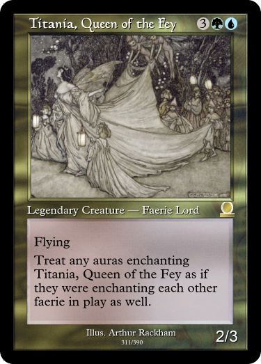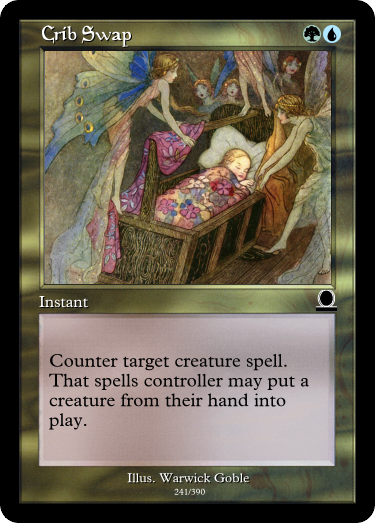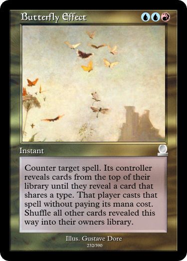 Honestly, I designed this (and Butterfly Effect) before Tibalt's Trickery existed. Honestly, I should remove it from the sheet, fairy mythos be damned. It's just abusable. Abusing it is fun, however.