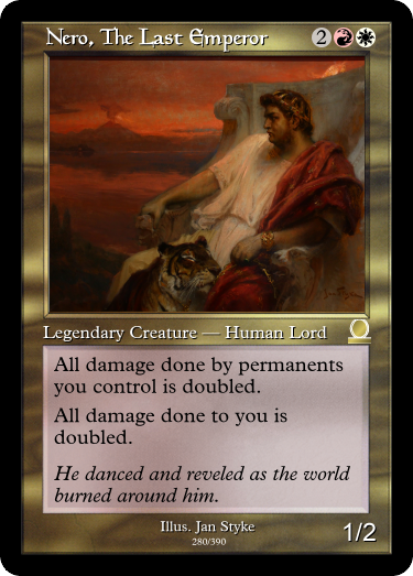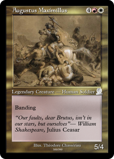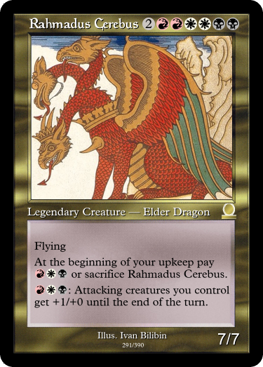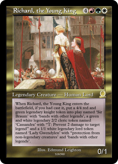 Most of the uncommon legends are french vanillas, and were originally vanillas. Hero Protagonist originally was just a 4/4 for example, but I gave him rampage so he would have some synergy with Erik Wartooth.