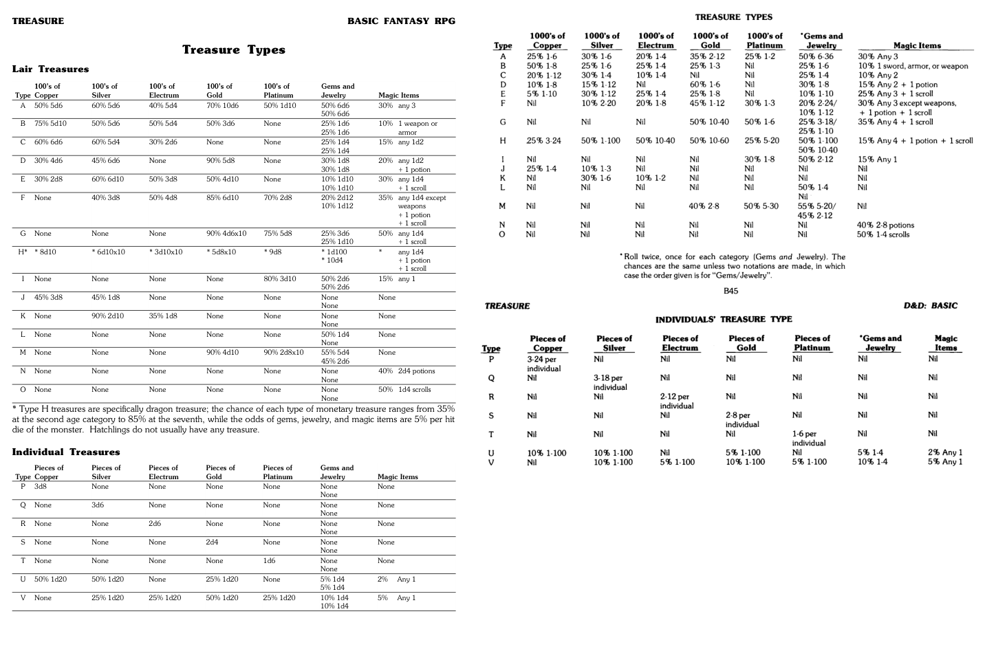 >>97535857NTA. I wouldn't say it sucks but it's better to steal ideas here and there for a batter base.I find interesting how LL, BFRPG and ACKS all changed the treasure tables, which originally had way more logic AND flavor that people give credit for.What was the logic behind that, copyright?