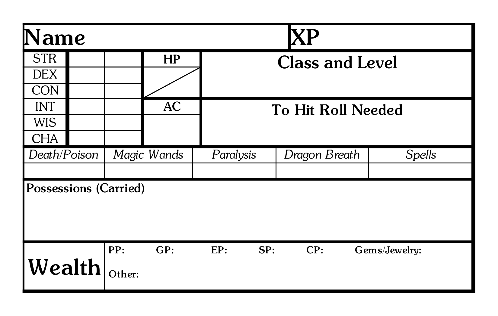 >>97561554Oh. Duh. I actually don't know because I prefer to just use LBB OD&D. I would guess that Swords & Wizardry uses something like the AD&D rule just because that's how they roll.>>97561548That's a good point. Basic doesn't have an Assassin.