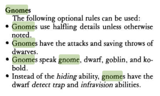 Never knew that tucked away at the bottom corner of page 293 of RC were rules for Gnomes. Not anything spectacular, in a section you arent going to read (Converting PCs between ADnD and RC), and very easily missable but it is in there. Sharing this for those of you who might want to play Gnomes in a basic game with RC but without Top Ballista. Also the rules are way simpler than Top Ballista and usable in other OSRs if that is your thing.