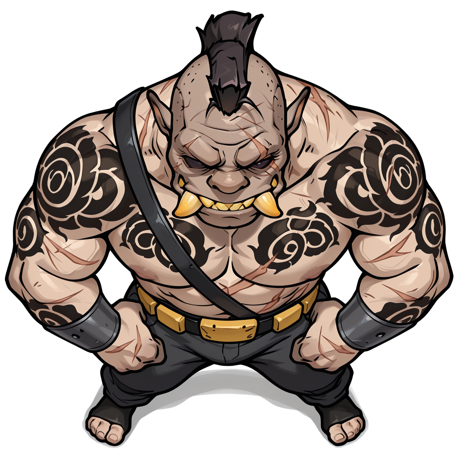 I'm continuing with the request. Next is a T-Montster-Man and the description seems to really want ogre T-men so I'm doing that. Last chance to ask for what tattoos they get. As established I will put it in especially if you joke about it.I'll also revisit western Atlantean because even though leather daddy vampire hunter is funny, I don't think that will help anyone wanting an Atlantean New West token.