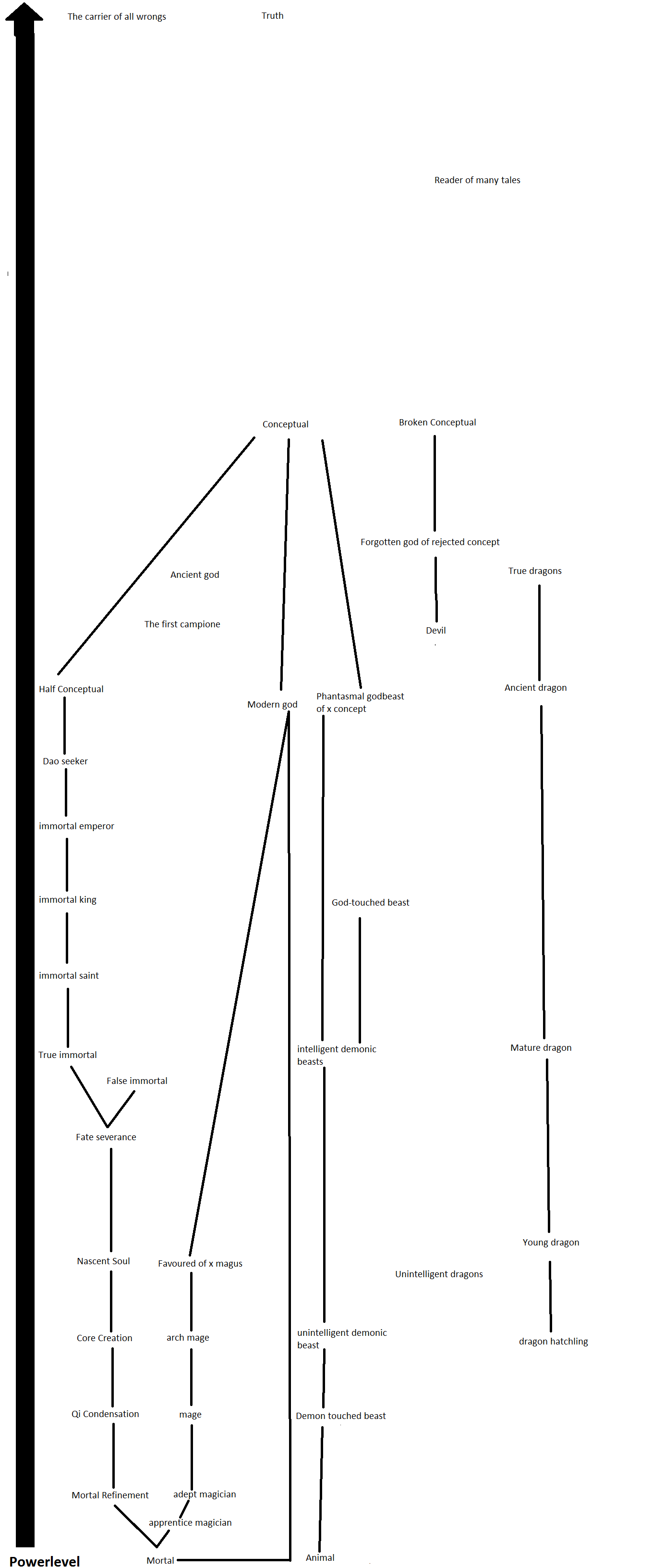 >>97538863I vastly prefer power systems that are not just be simply about "becoming stronger" ad infinitum, but becoming something more: obtaining power involves transformation into a superior lifeform, which grants abilities unavailable to inferior beings; each level of power is also be a level of existence.