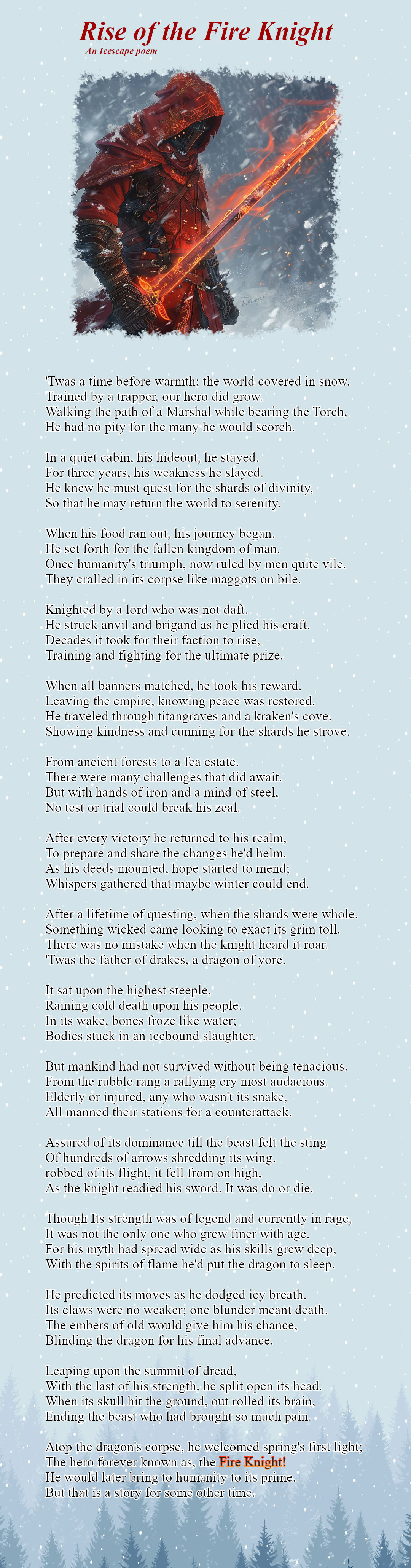 >>97539437I'm in awe anon. Fire Knight was always one of my favourite builds, but this goes above and beyond. Thank you. I seriously appreciate this, and will be saving it directly into my subfolder for Icescape. It humbles to me to know one of my CYOAs inspired you like this.>>97539485Fear not, there will be potential for skeletons. There are several fuel sources, death being one of them. Failing that, you can always learn to do necromancy the hard way, or try to join the lich faction.