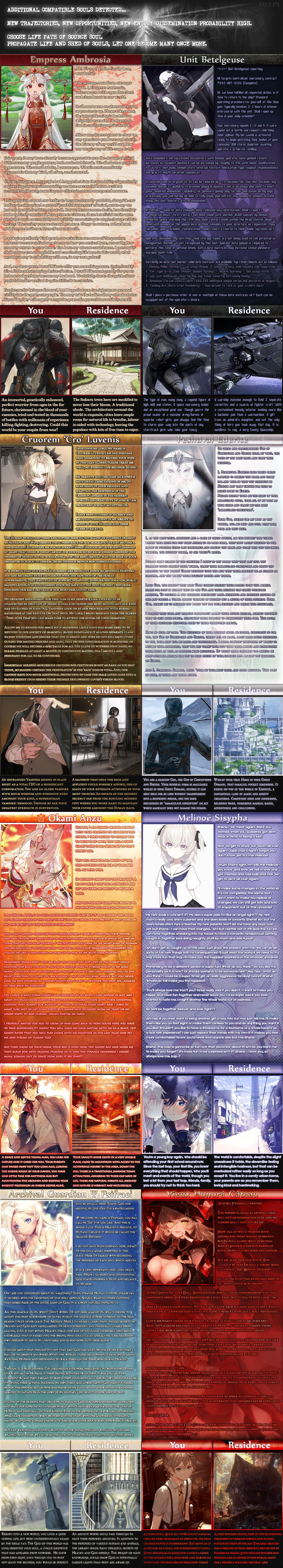 >>97546259i have kill the heavens and chain of isekai builds that fit the description, but neither cyoa is specifically for thati think fixing god's fuckups lets you do it, you can build practically anything as your race there, including far weirder things than psychopomps, but it's not very specific to any such theme eitherafterlife of spells sort of flirts with the theme in several ways, but isn't really that either>>97546342interesting you'd mention it just after i wrote about it, didn't know there was an update but it's not really that huge from what i can see