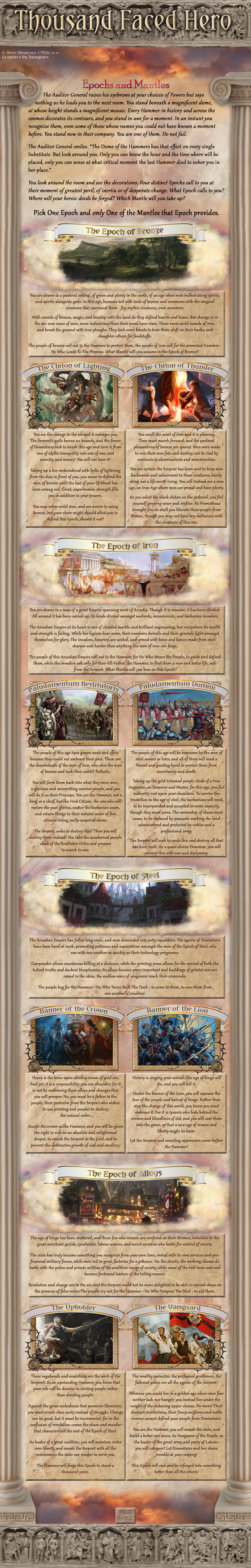 >>97539627They're six separate branches of the same system. Essentially, your first choice is to determine which aspect of the world your power imprints on, and that causes it to take its initial shape. There will be many ways to gain, subvert, enhance, and exchange powers, and a decently wide range of opponents to use them against.