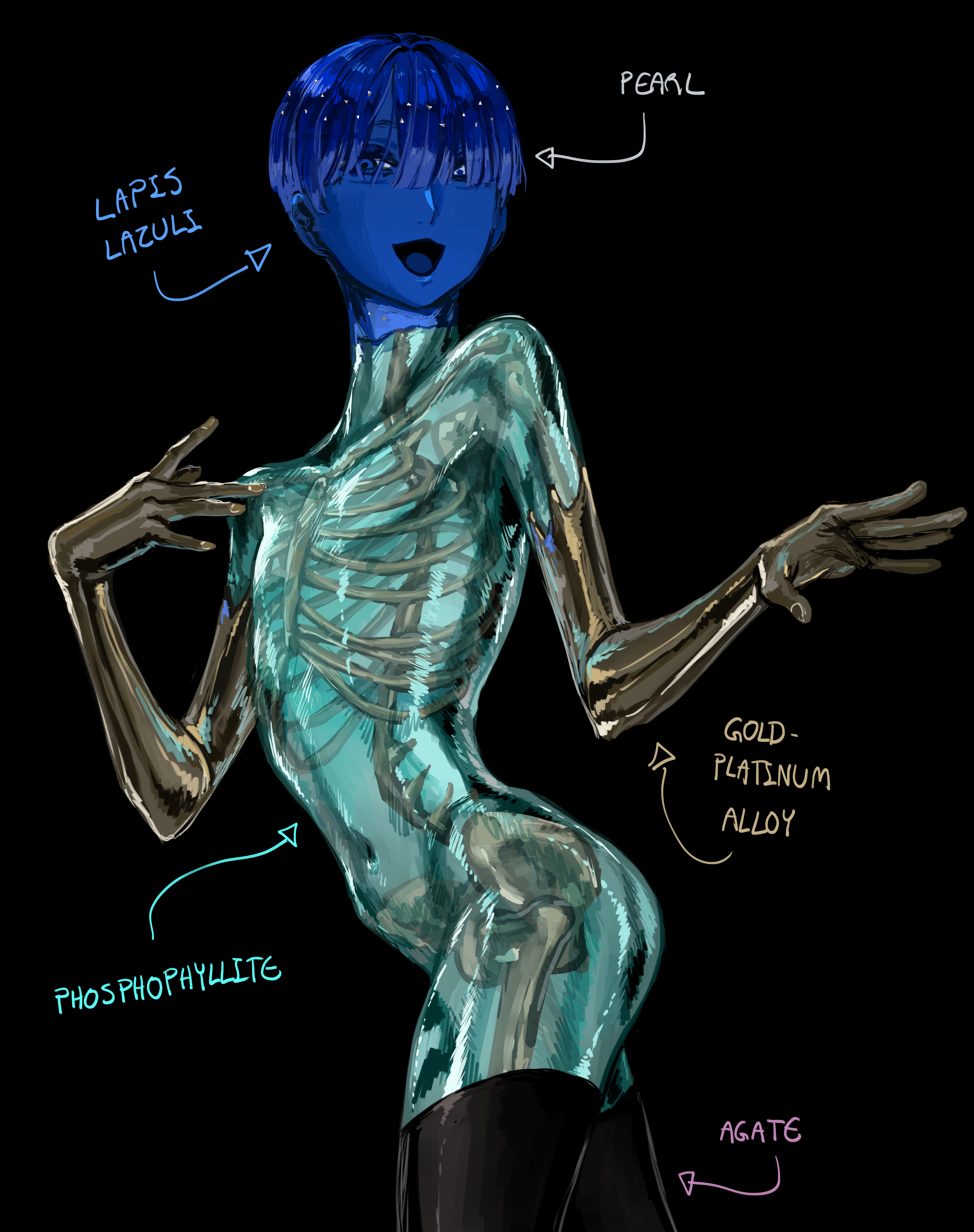 >>97543182A quick google tells me that they're part of a genderless race of mineral people.While the character apparently starts out as more innocent/female coded in appearance they go through quite a lot of character development and end up much more male coded in both looks and behaviour but still being fairly androgynous overall.