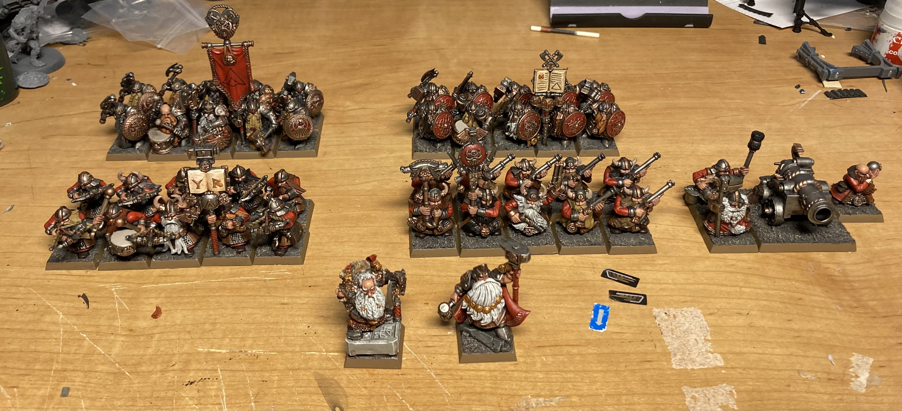 >>97552005Personally, I think they're utterly worthless, but that's mostly because they've been shot off the board before they could do anything in almost every battle they've fought in. The one time they actually got in to close combat was during my previous game against a Cathay army, and while they did manage to toss out a stupid amount of attacks (18, if my memory serves me), they failed to inflict a single wound on one of those terracotta giants and proceeded to get mulched. If forsaken and MSU in general are good, I sure as hell don't know how to use them. Any time I bring a unit of anything that doesn't contain at least 15 models, it just gets exploded before it can do anything. However, in all fairness, this may be a skill issue on my part. I'm certainly not good at the game! Even in yesterday's battle, I bungled my attempt at having my dogs screen shots from the dwarfen artillery by failing to notice that the organ gun was on a hill. Maybe I should get more dogs, that way I'll have more chances to make mistakes, but those specific metal hounds are already hard enough (and expensive!) to find and I'd rather expand my collection in other ways.>>97551552Thank you, anon. They're by far the part of my collection that I'm the most proud of. I'll be painting up even more of them, this time with metal halberds and the second set of metal command squad bits, soon.
