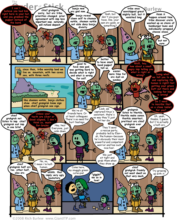 I like the idea of monster races like orcs being irredeemable monsters like Tolkien orcs, but half orcs (whether they be from actual interbreeding or someone wanting to make a species with the best of both worlds) are the more friendly civilized ones that you can debate ethics on.