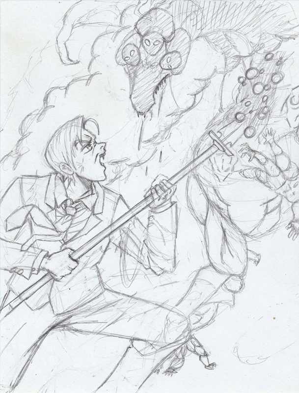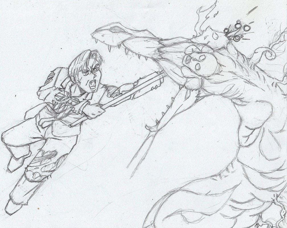 >>97611773Here's the rough layout I've started working on. I'm also considering sketching Nobleedge delivering the strike and impaling the dragon through its mouth instead.