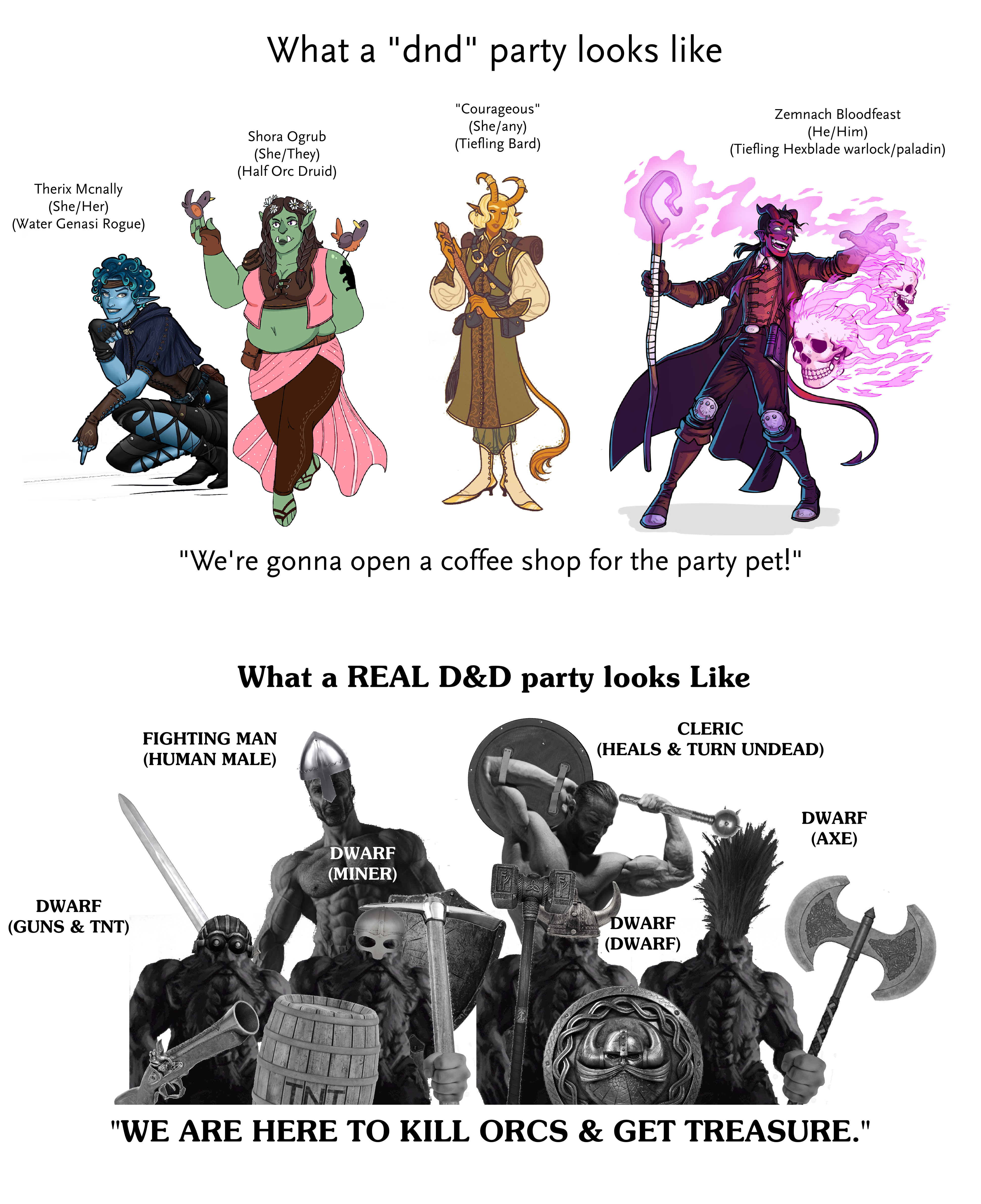 I mean, they're annoying but the freakshit races are basically just an aesthetic. They don't really change the roleplaying dynamic. I mean, it's expected that DnD settings will be cosmopolitan and accepting so random villagers won't be scared of a half-orc or tiefling hero. As far as what's ruined DnD, I'd point to stuff like players long-resting after every battle because people want a power fantasy and not a gritty slog where you're budgeting your resources to get through a dungeon these days. Or Critical Role raising new players' expectations to an insane level - some normal guy running a quest after his shift at the IT help desk isn't going to be dancing around like a monkey to entertain his players or have the vocal range of a professional voice actor. To say nothing of DnD being scooped up by WotC(brought in Magic the Gathering shit like timmy cards) and Hasbro(brought in meddling normie executives who don't game themselves).