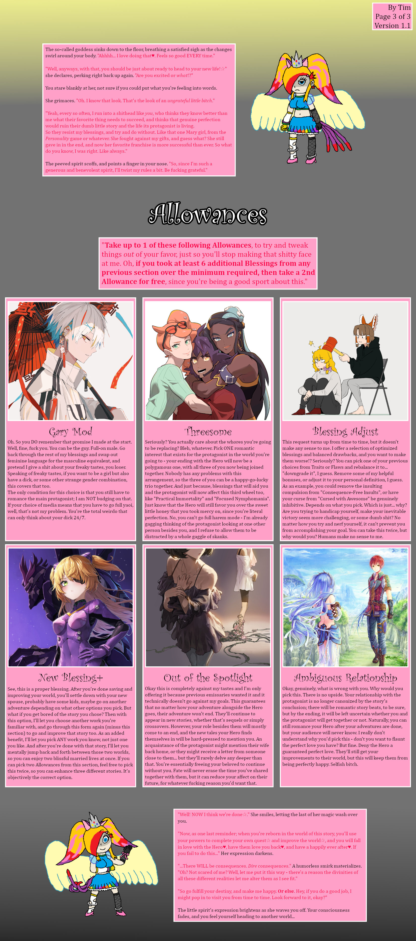 >>97561804Seeing DLC is always disappointing. It's effort that will never match the status of the original author's, effort that could have gone towards something new. More power to him and the explorations of his old CYOA. I just hope it is the first step towards a fulfilling career of making OC.