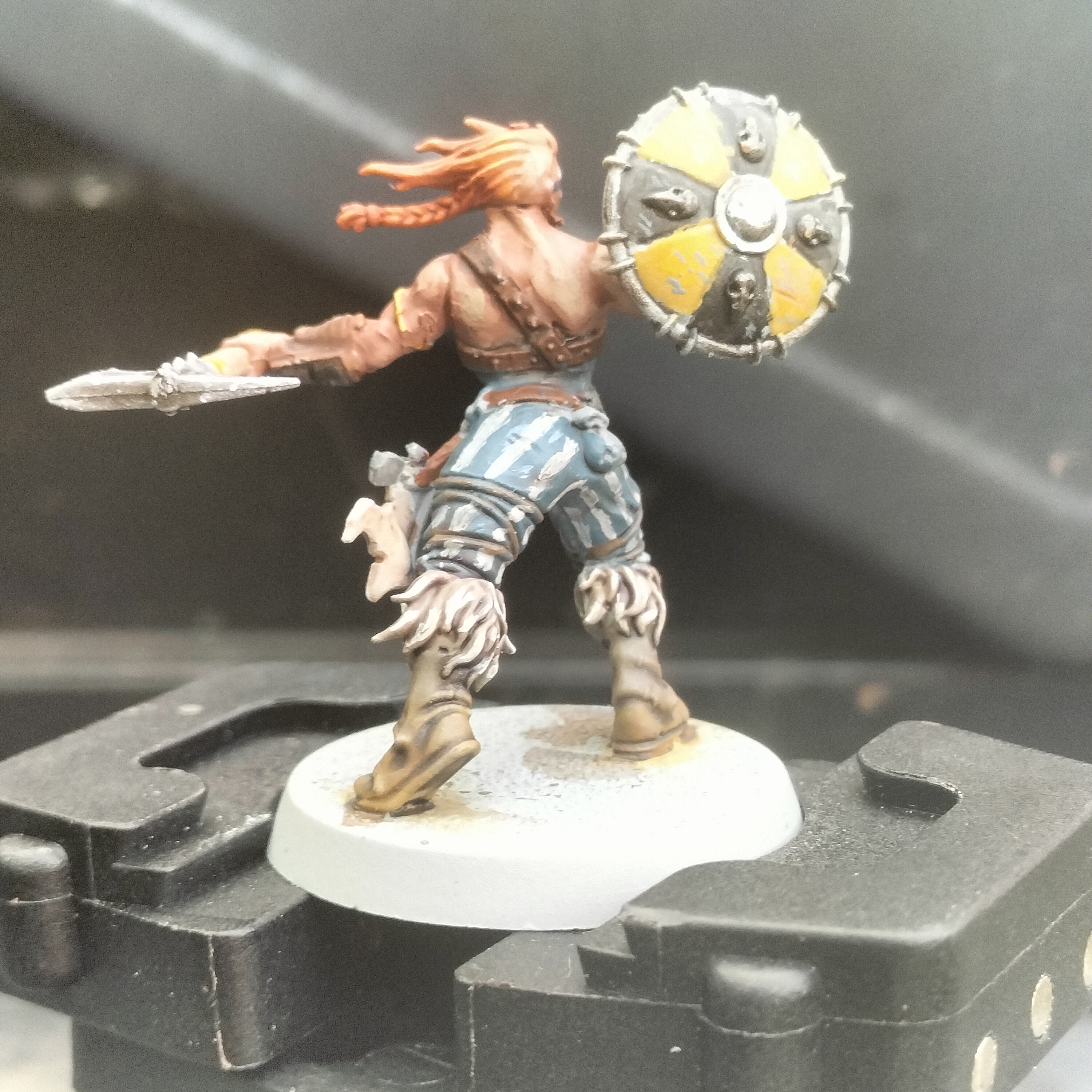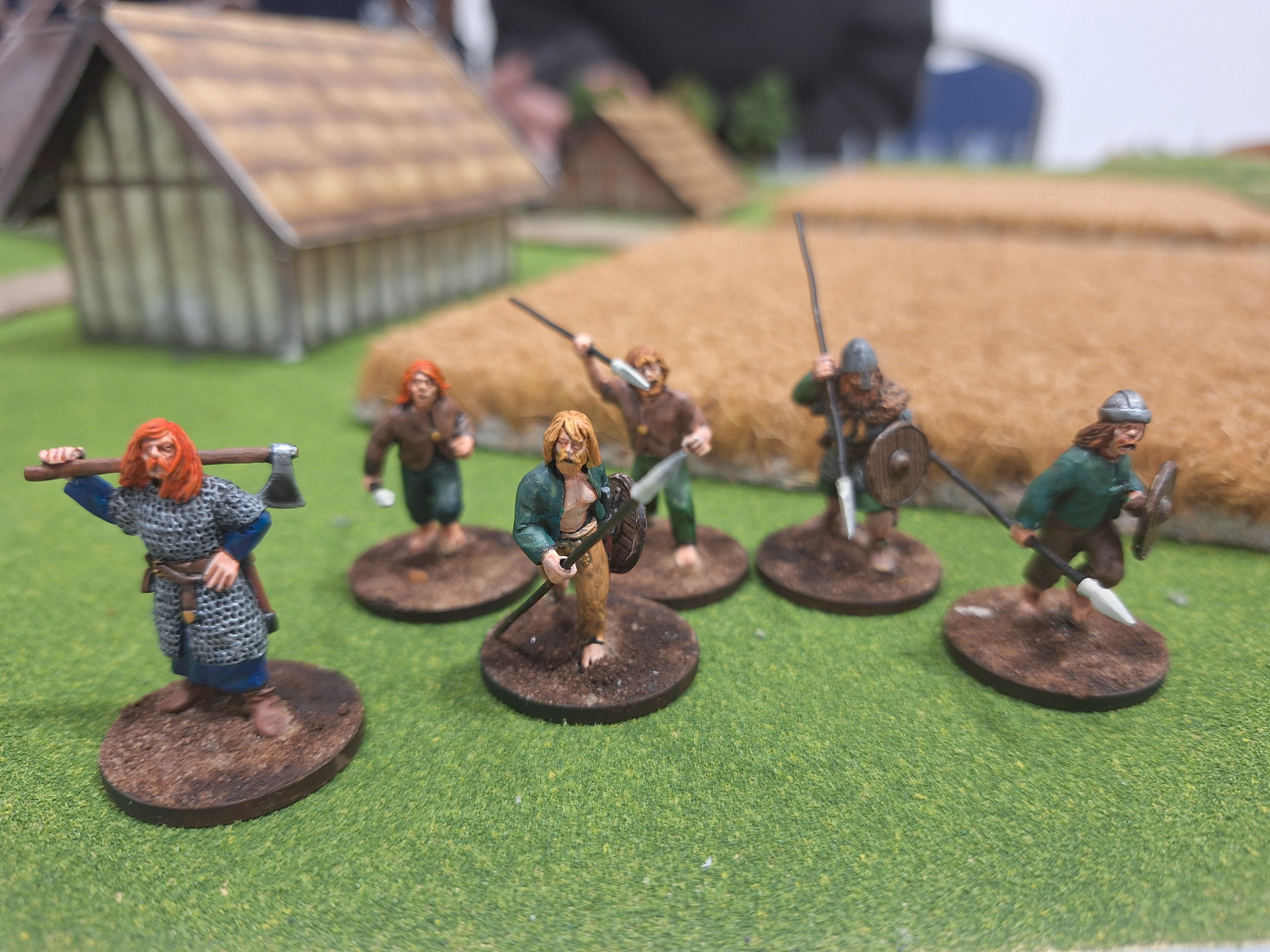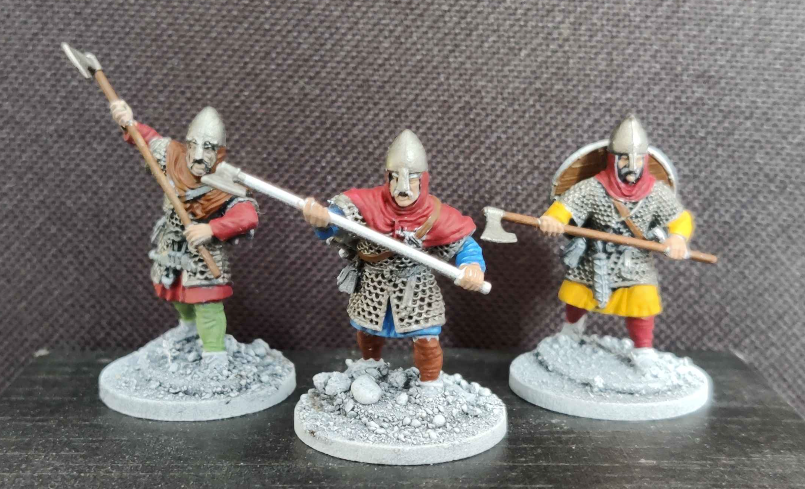 >>97594167I don't normally like posting WIPs, but I've been working on some Anglo-Saxons for dark age games. Got three Huscarls on the slate at the moment, I'm trying to base the colour schemes on those seen on the Bayeaux tapestry. The Victrix minis are very nice, but some details such as the hoods on almost every mini in maille, the leather edging on the maille, and the Gambeson bodies (ew) are a drawback.