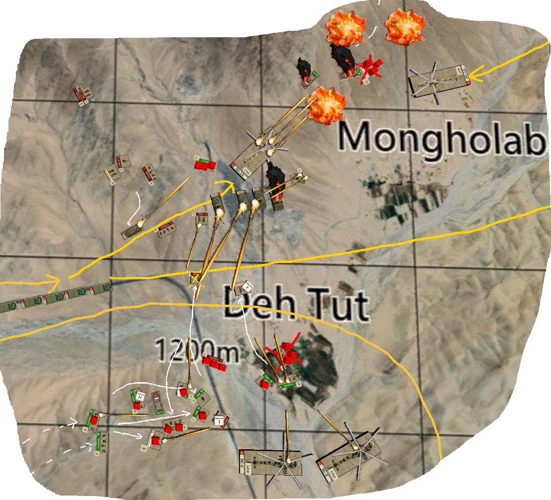 >>97594167I have an AAR for a Soviet-Afghan war Kriegsspiel I ran over the past 2 months, using the Hind & Seek rules as a basis.There were 4 players on each side, mostly separated from each other and with communications friction imposed by mountains or being in combat.There was total fog of war, with players only being given a small screenshot of their surroundings, and a written report each turn. They would then have to issue written orders, which were interpreted by the Umpire based on the quality of the forces involved, and knowledge of the conflict.The Soviet company commander spent the whole game drinking in his command shack and almost completely neglected his forces with helicopter support, meanwhile the Mujahideen tried to go toe-to-toe with every soviet they met rather than hitting and running. It was one hell of a game, and ended up being very close.https://docs.google.com/document/d/1Q0xHWxUYEogUa8cyIFdBt9psExrnvGAksSQGEHB5YQY/edit?usp=sharingAs with other KS games run online play-by-post I ran the whole thing on TTS, then the assistant umpires loaded my module for the current turn, and made their screenshots and wrote reports for the various players. We almost had 1 umpire per player which made for some very cinematic novella reports for each turn.