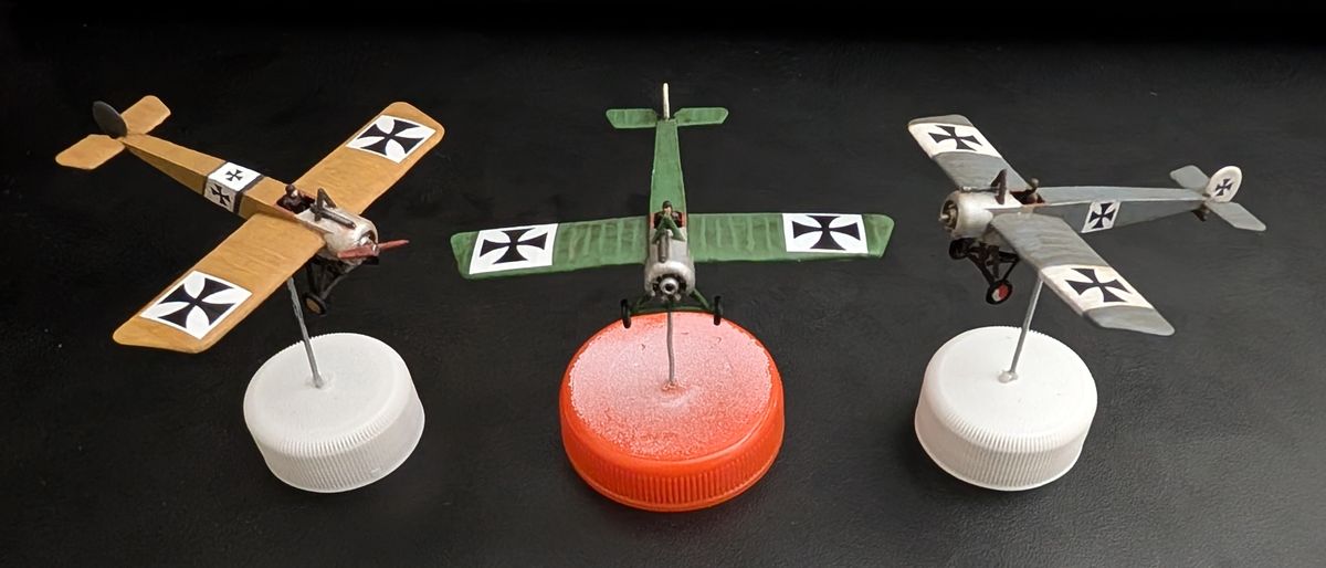 The squadron grows. I fucked up the wings on the green one beyond belief but they were scuffed and uneven straight out of the printer anyway. Good enough at a tabletop distance, it gets to be the suicide pilot.