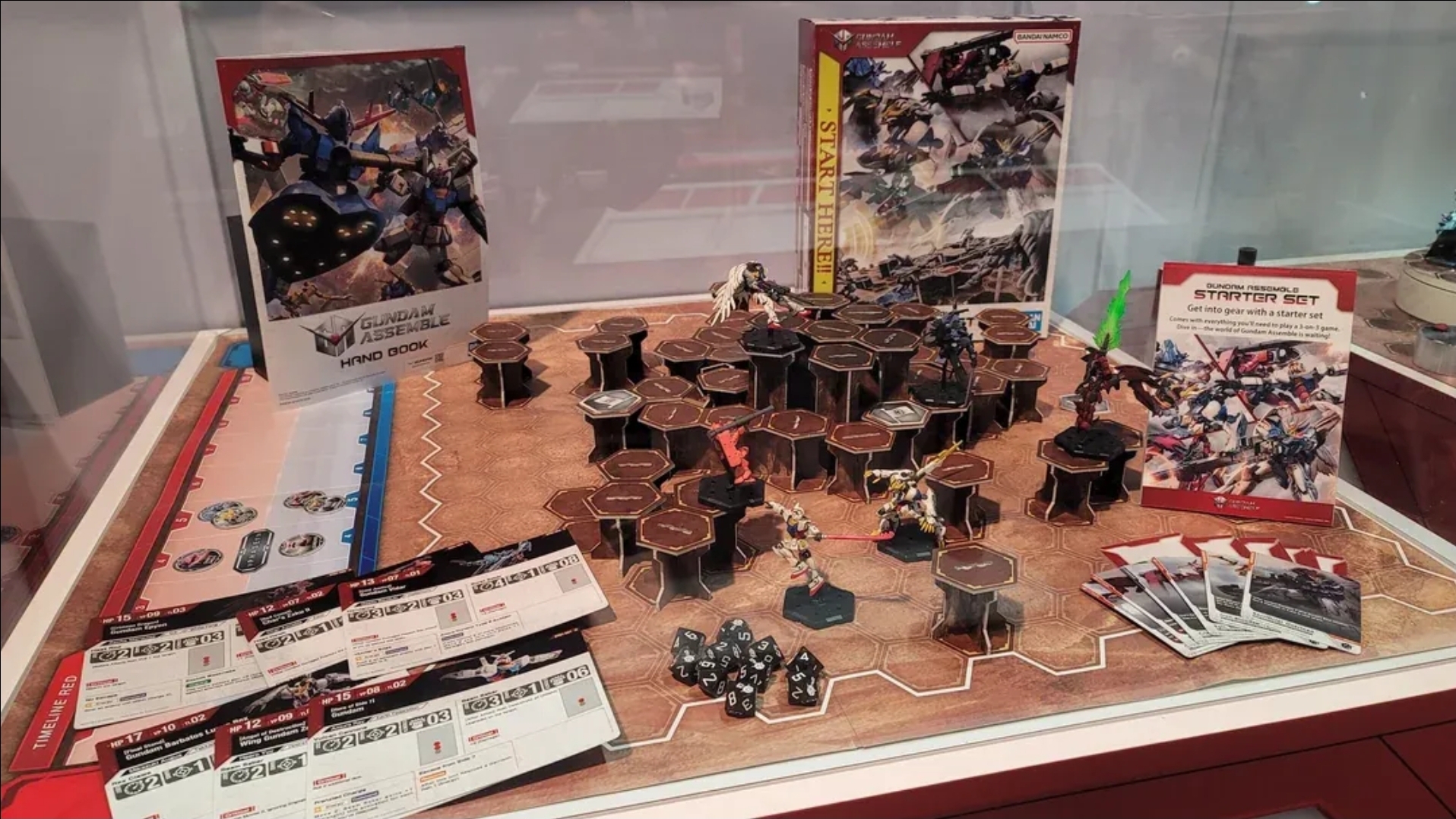 >>97577153The starter set on display. Seems to be a 3v3, two player starter, with the cardboard terrain and a mishmash of hero suits: RX-78 Gundam, Wing Zero, Epyon, Vidar, Barbatos, and Char's Zaku.There was also a deluxe set, which they only showed the box of, but it seems to be a 5v5 themed box around the battle of A Baoa Qu. First expansion pack likewise appears to be a 3-unitpack of WfM suits.