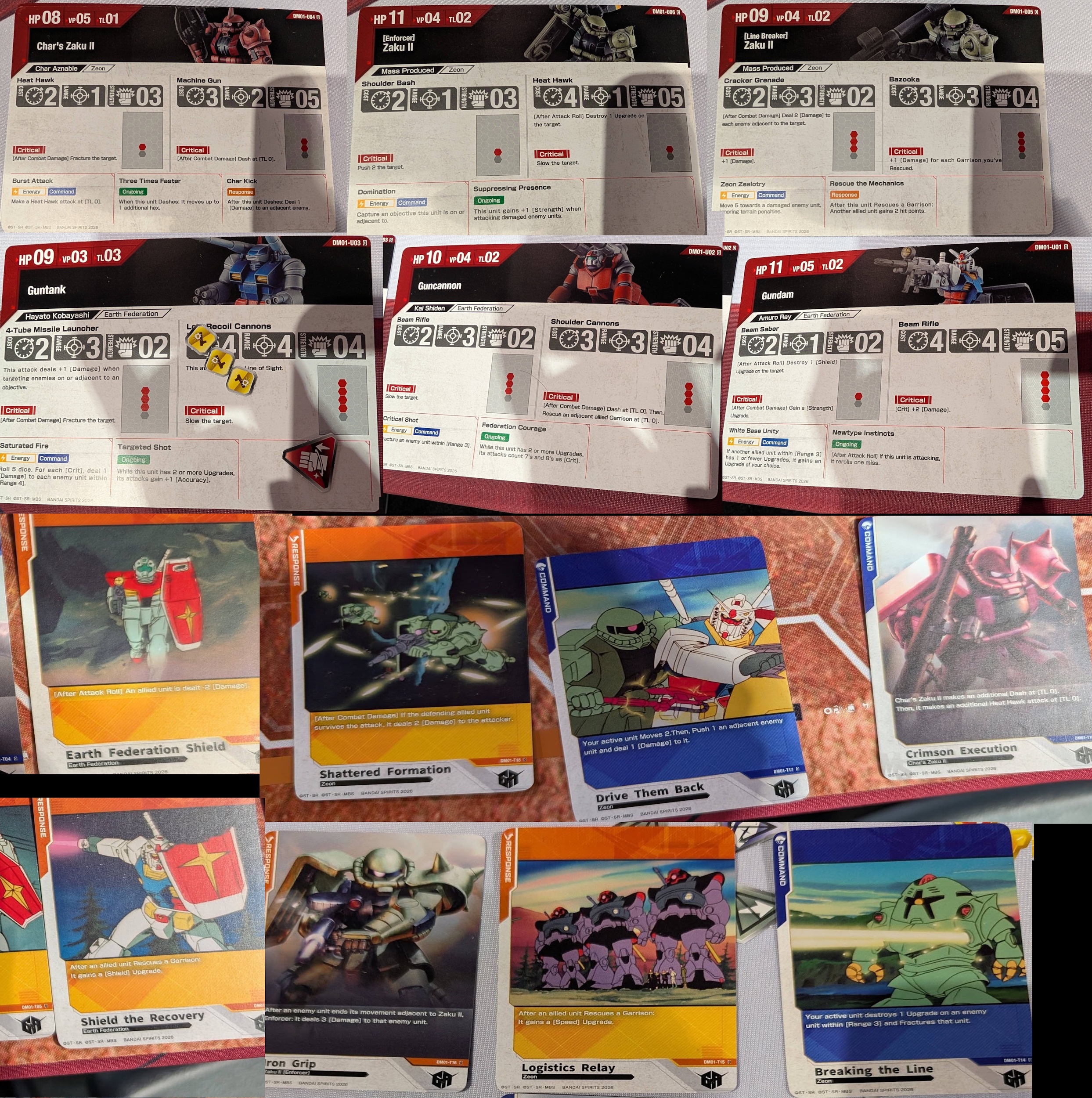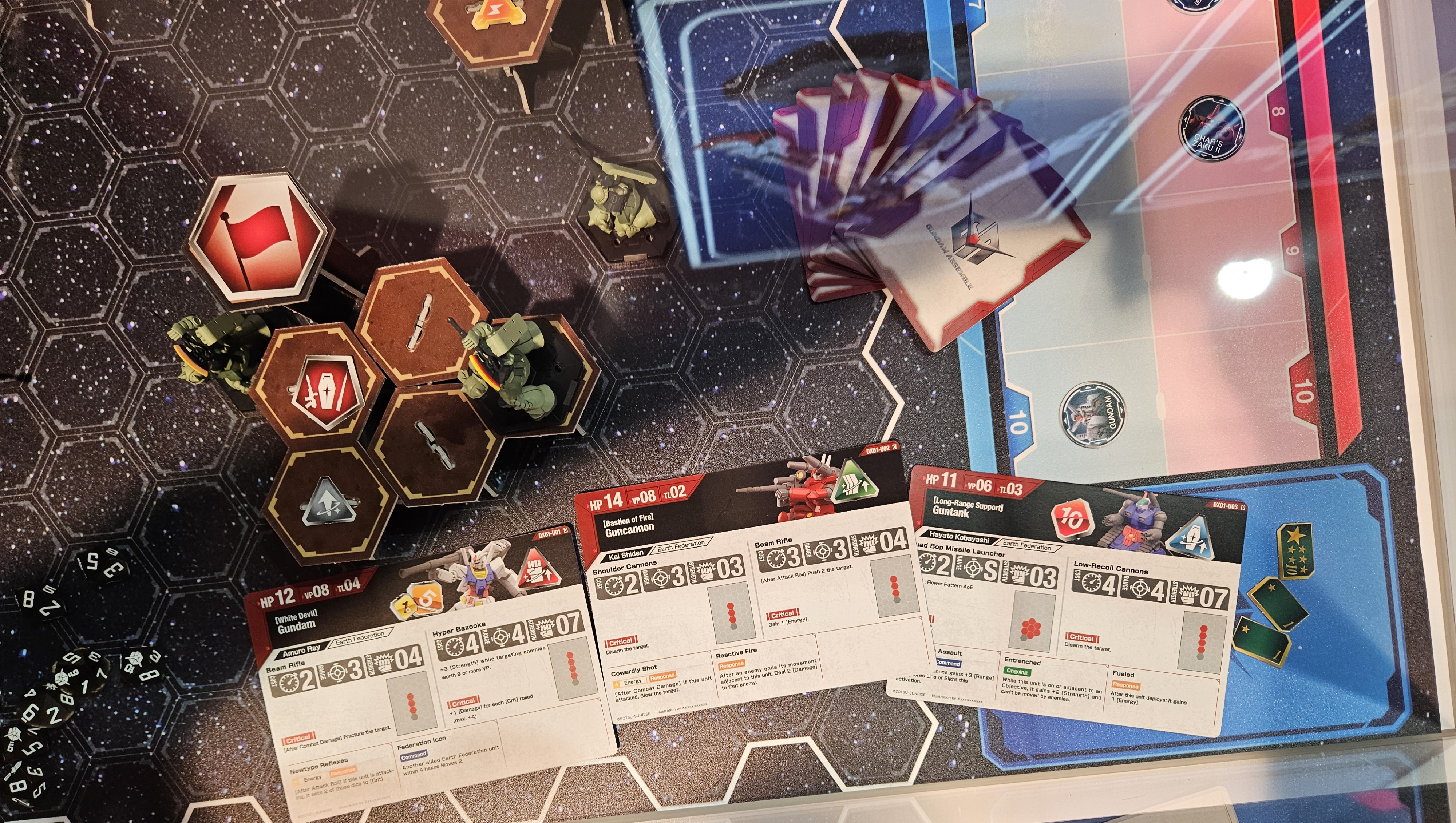 >>97596526Guntank and the Zaku Minelayer will be the splash damage dealers.Ranged weapons could be fired at close range, so the only distinguishing factor for melee weapons is the effects. I am not sure if there are any engagement rules.Note that the card numbers are marked with ST(starter), DX(deluxe), DM(demo) and possibly EX(expansions). Maybe the TCG models will be rereleased as expansion squads in the future. At the moment the TCG Federation and Zeon models are categorised as DM.Each stat card is model sculpt specific.