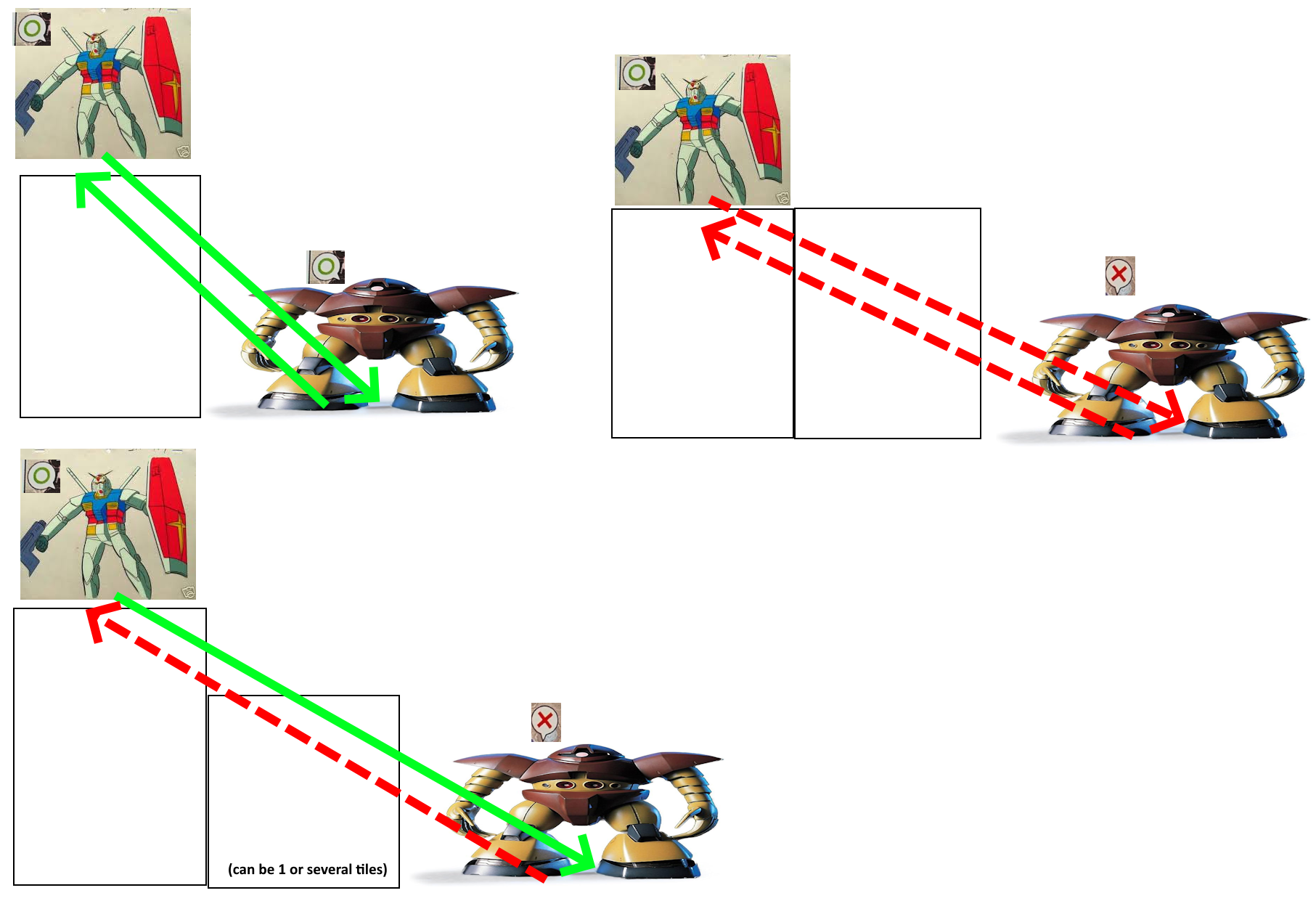 >>97577153The LOS example is a little confusing but the rest seems pretty straightforward>>97577807You can still find tons of these on ebay or mercari. The rules were translated into English on the Gundam 1/400 facebook group.>>97578495>>97580215The rules are fun and mostly simple if you get a chance to try it