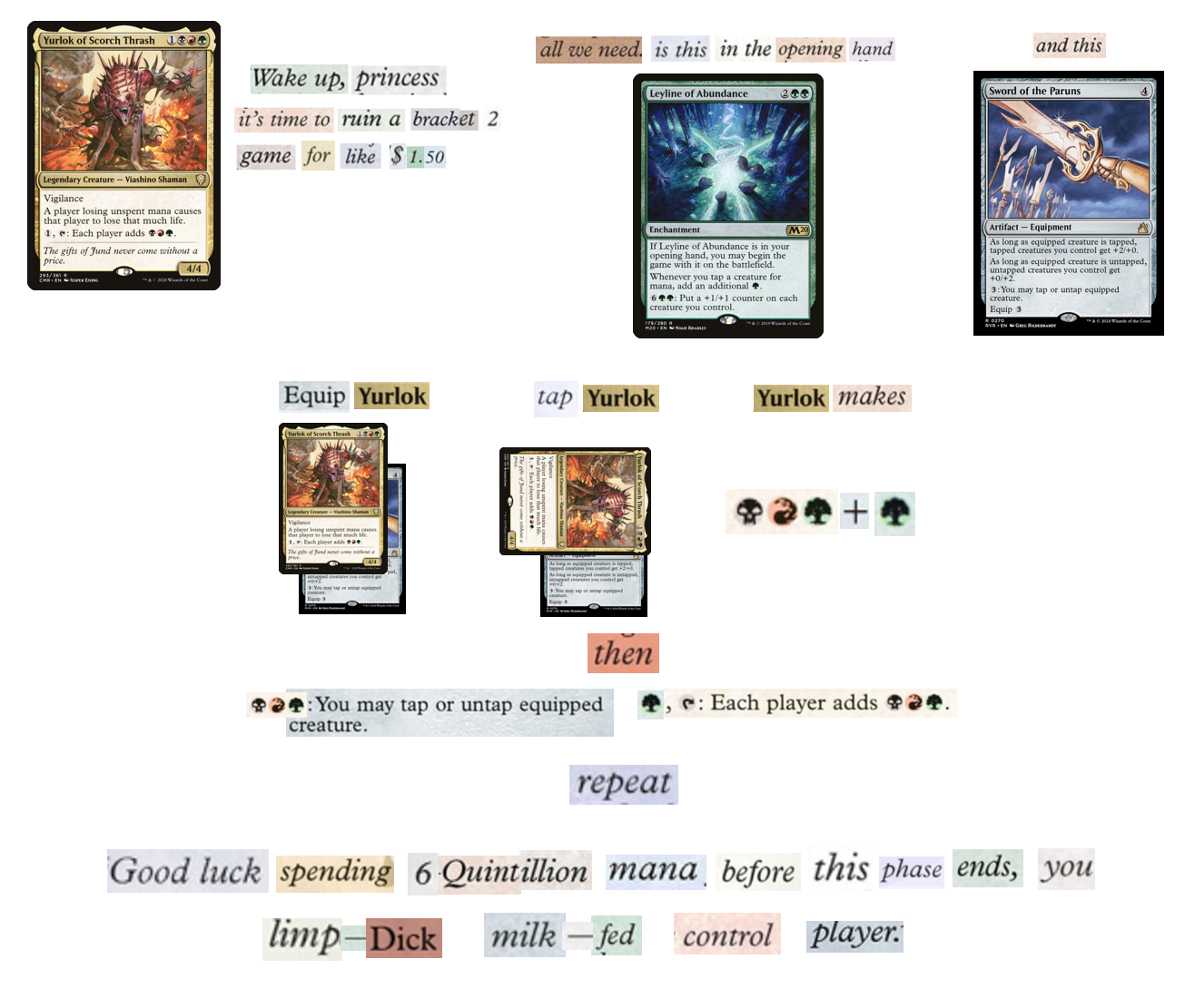 >>97581927I have many shitposts. But honestly if you want to make your opponents change how they play then bringing back mana burn with Yurlok would be a good way to do it.
