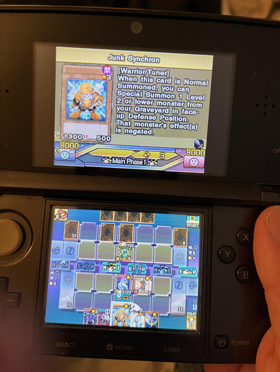 >>97588227>>97585862Ive been playing world championship 2011 for a while since I hacked my 3ds. Its a pretty cozy time. The game is slow enough that face down, pass can often be viable and stall for a few turns to get the cards you need, but you still got a decent amount of explosive options too. Also a good variety of cards at the time. Wish the game was slightly later or made just 1 more for 2012 so that it could get the cards from the very end of synchro era and early Xyz. Too bad its a slog to get a lot of cards natty after you finish the campaign. I cheated and got them all after I was done with the main story.Regardless, has been a fun time waster. Its nice to get a little older time then what you can really do in master duels.
