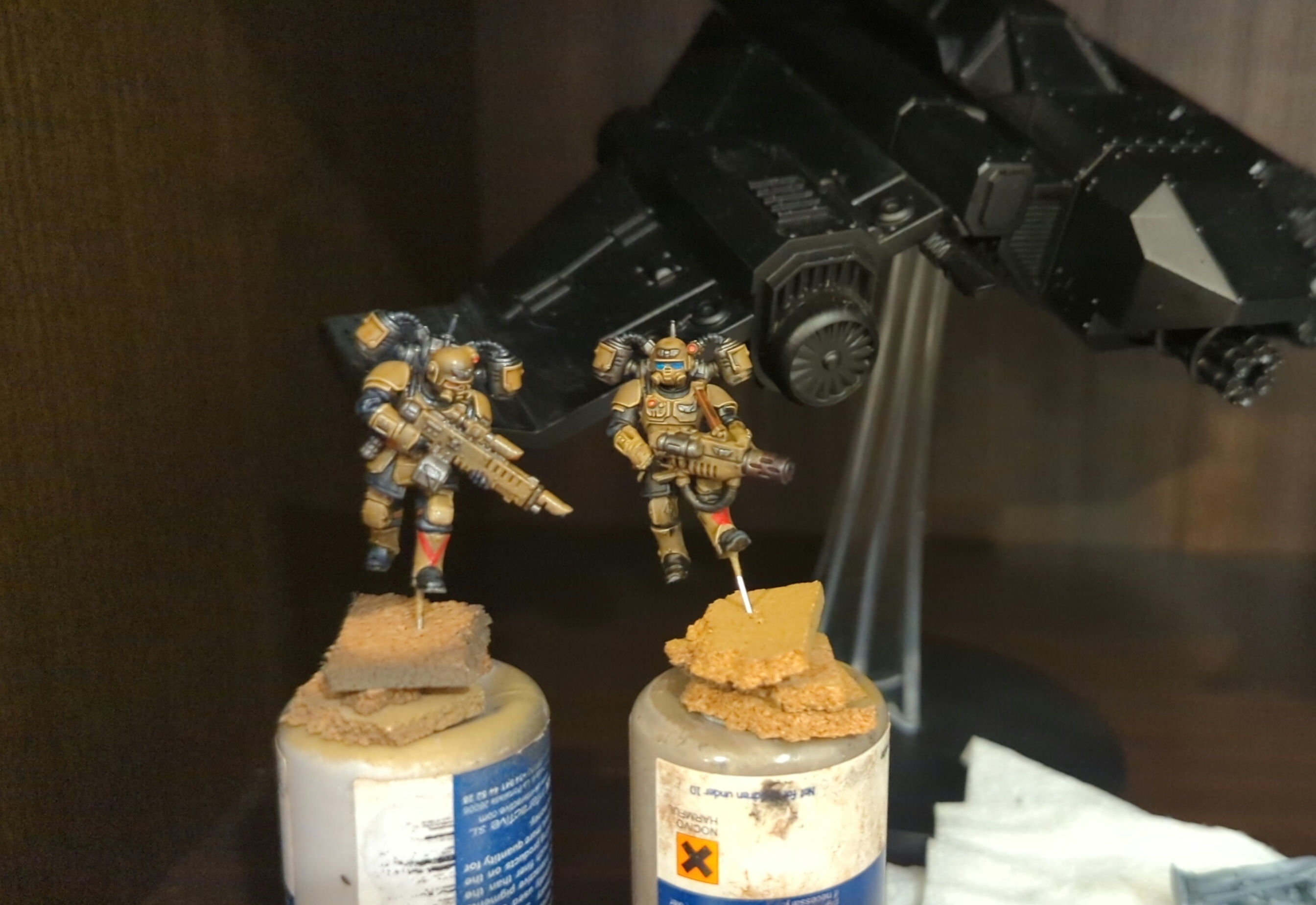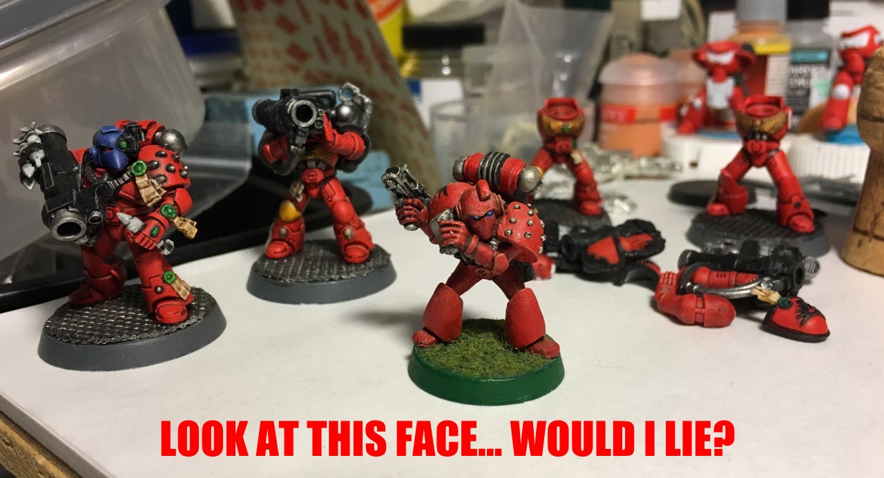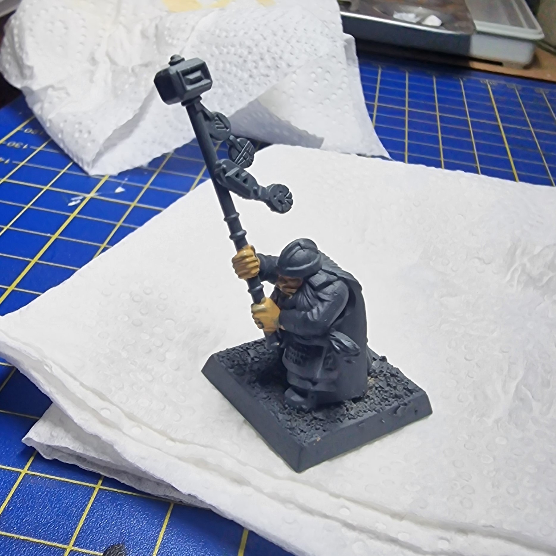 my favorite part about oldhammer models was that i would build them in sensible assemblies, build a torso and legs, paint it, paint the arms and gun, attach to leg/torso, paint head, glue it in.